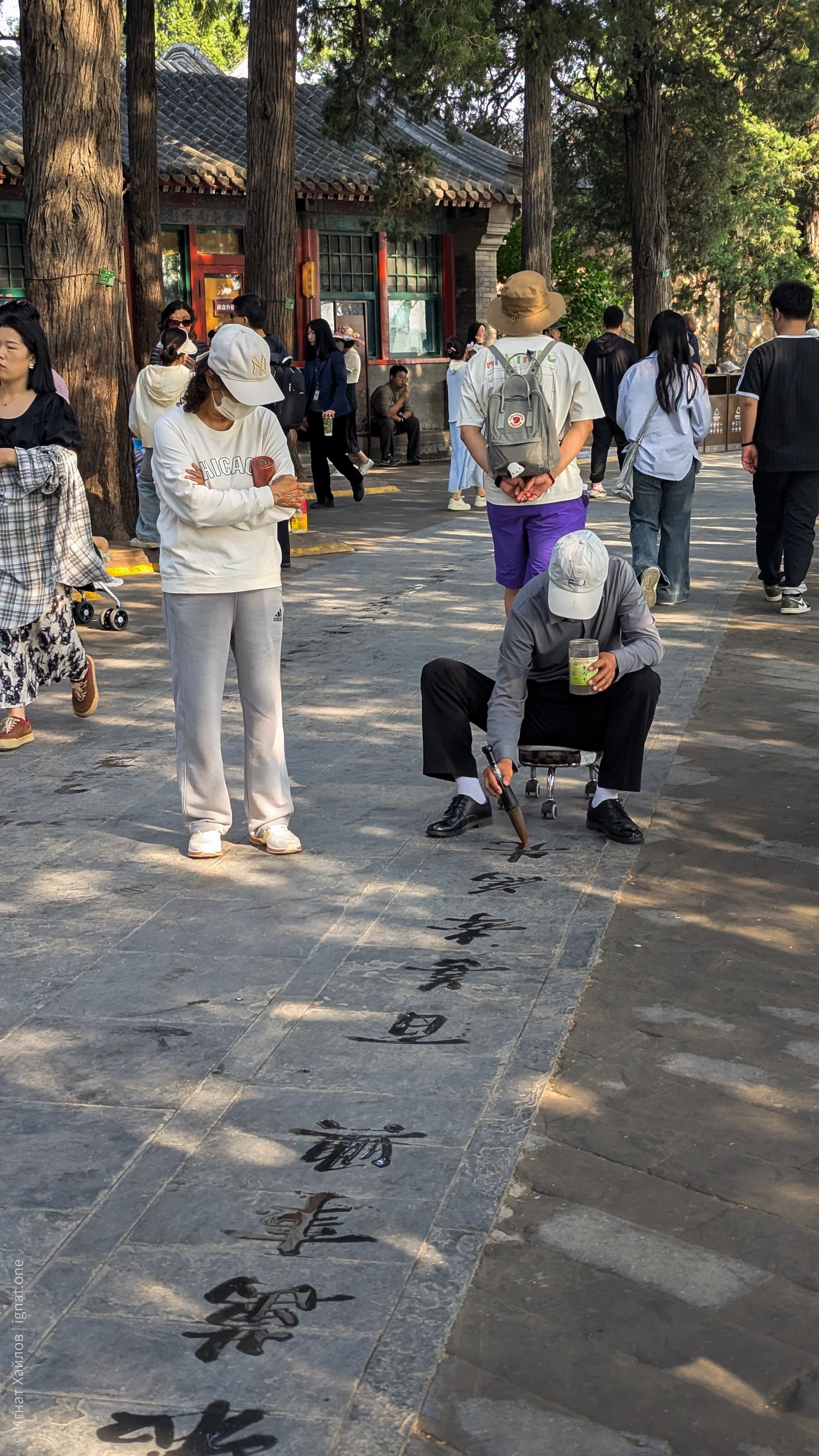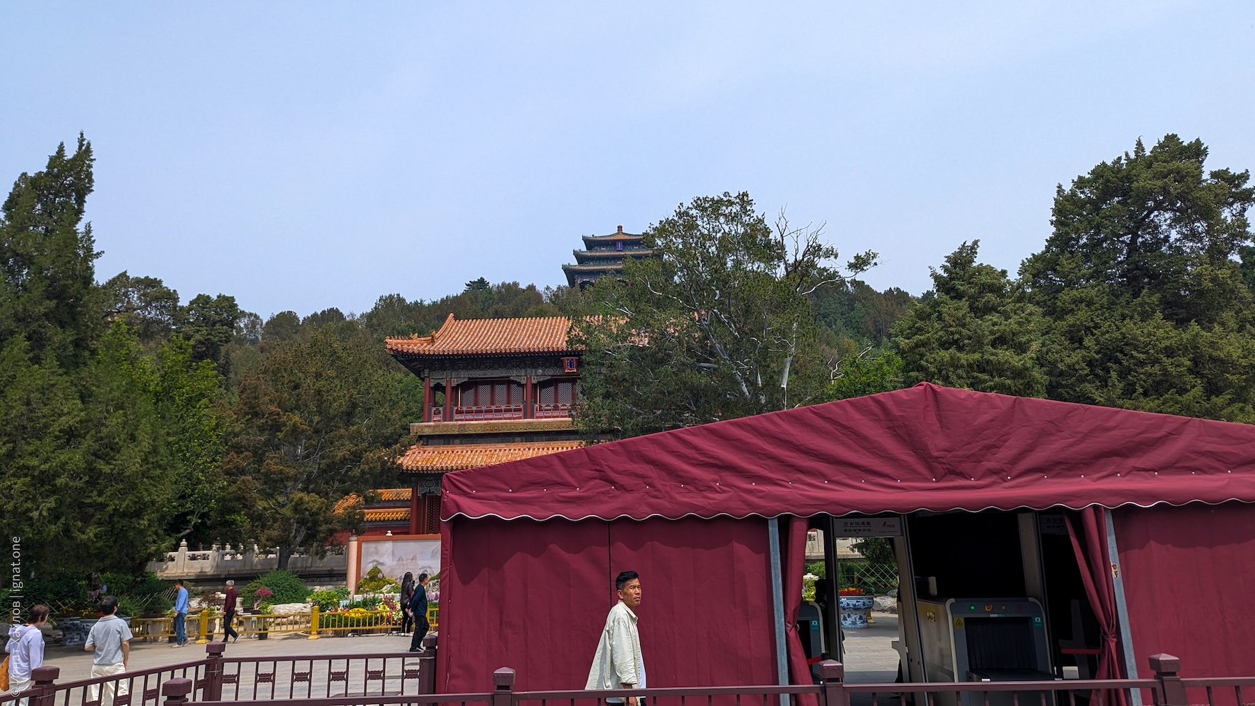 Для входа нужно было в кассе купить билеты, а чуть дальше нас ожидала очередная фильтрация, которая уже превратилась в мем. Вообще Пекин показался каким-то очень зарегулированным городом — входы в парки платные, и везде нужно пройти досмотр, иногда несколько раз.