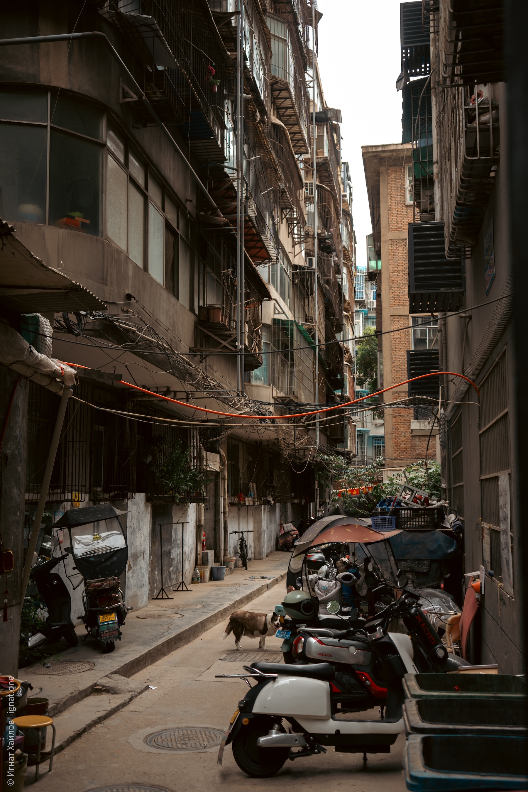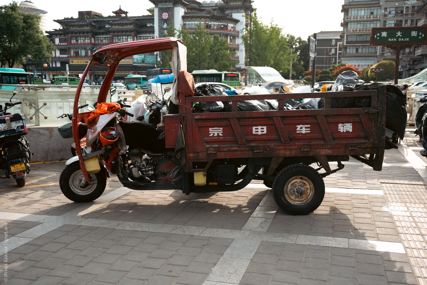 Сначала решили дойти до городской стены. По всему Китаю очень много вот таких хаотичных парковок со скутерами. И вообще, я заметил, что в целом скутеров на дорогах очень много
