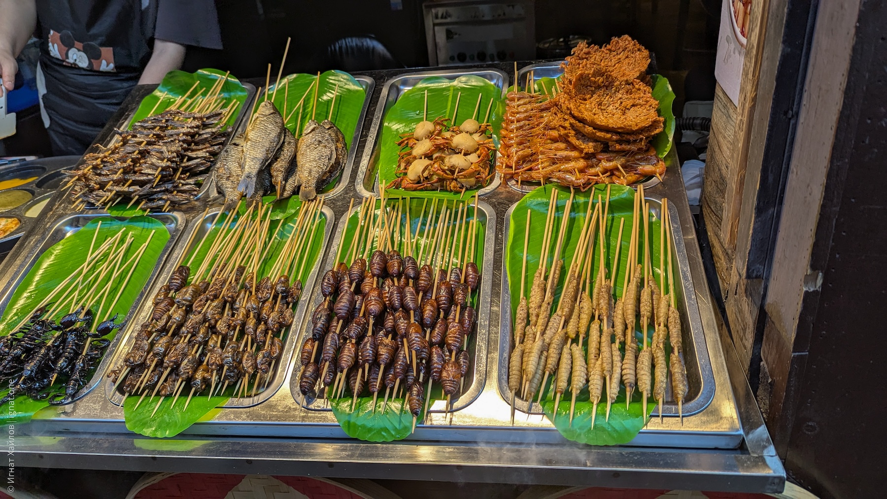 Нашли ларек, в котором продавали всяких жуков на шпажках