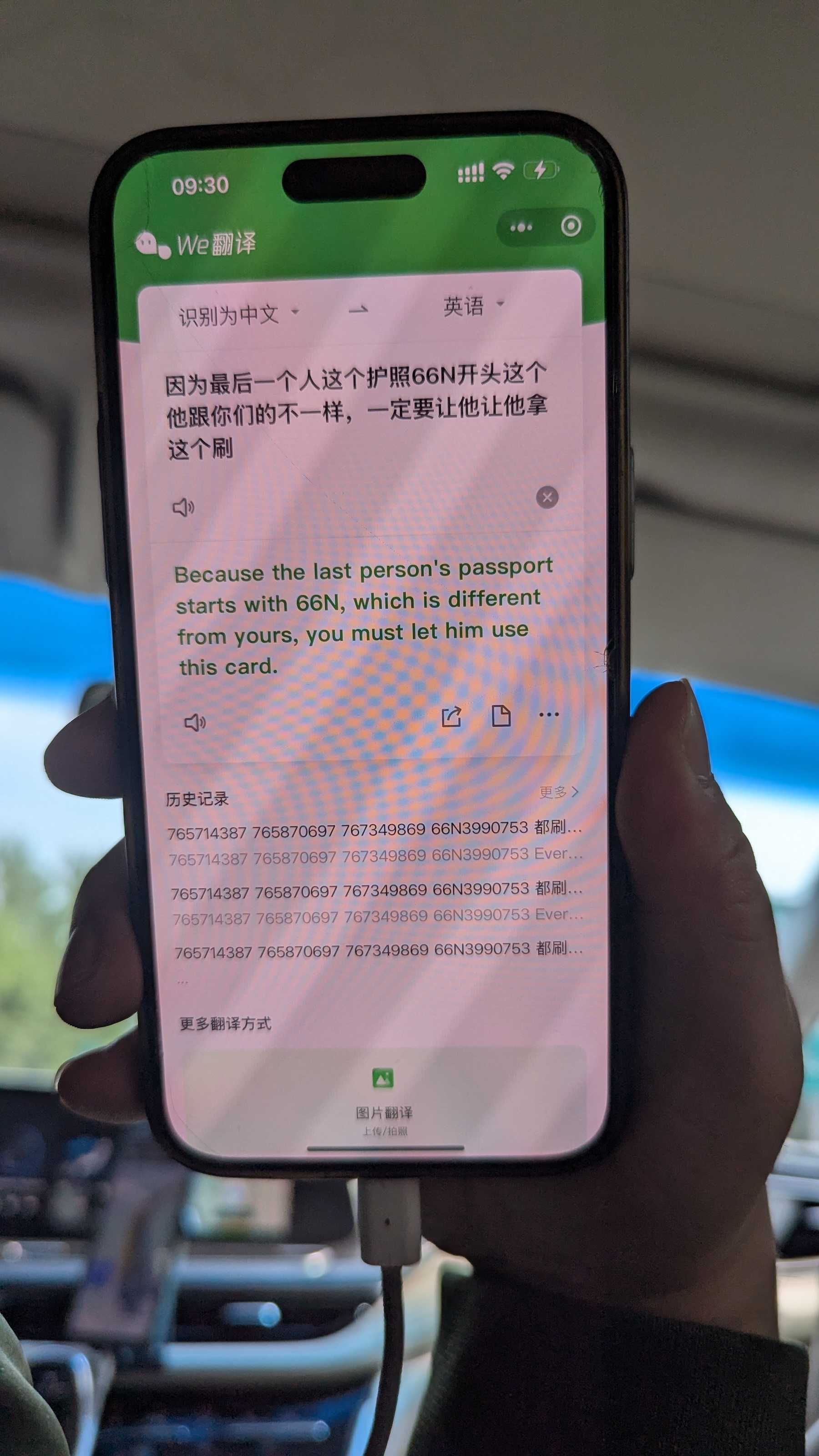 При подъезде к стене, водитель попросил наши заграны, чтобы купить билеты. Всё общение проходило через переводчик в WeChat.