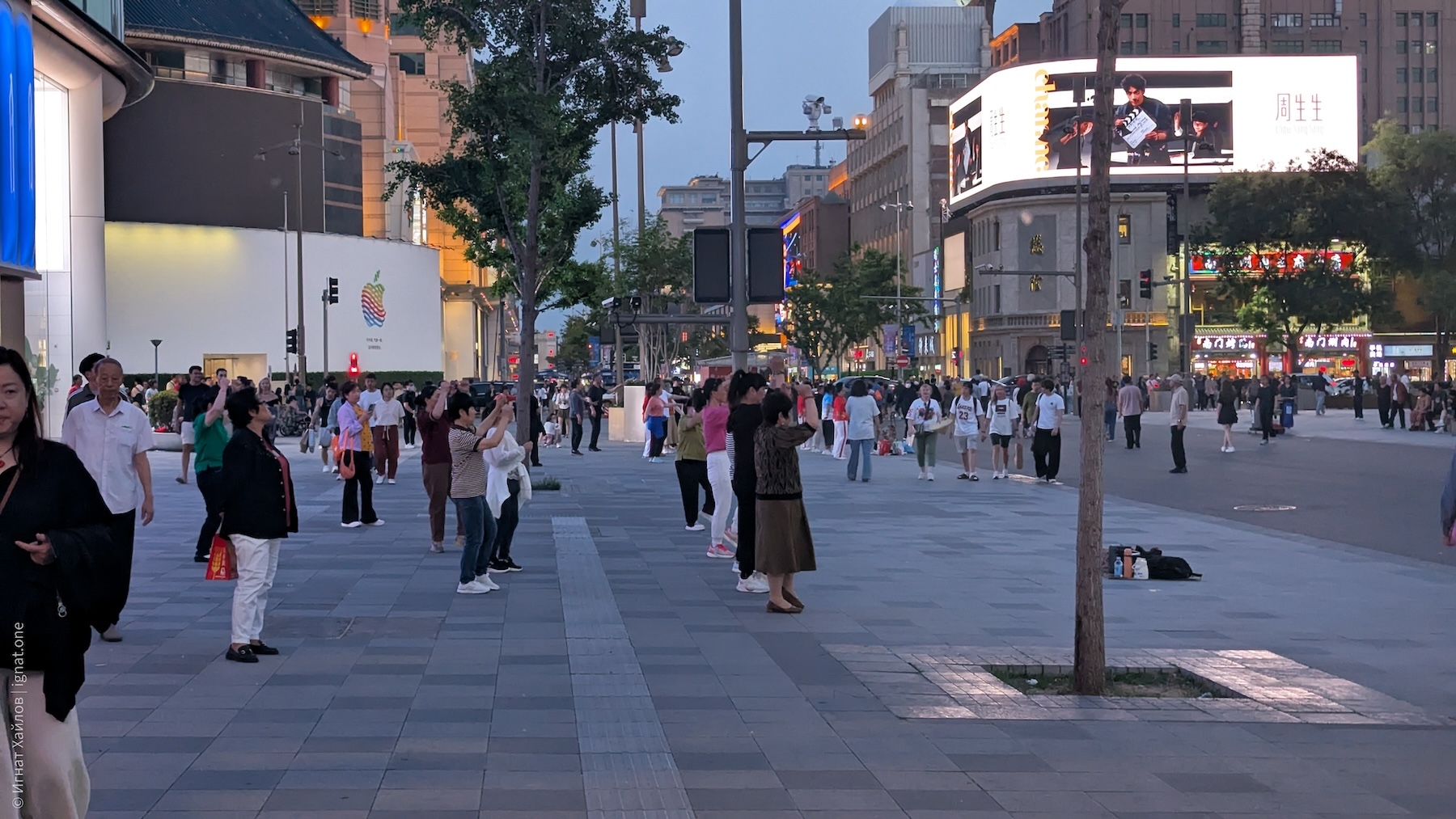 Обратно в город вернулись уже под вечер. На ужин хотели найти ресторан при гостинице Marriott, TripAdvisor говорил, что в нем самая лучшая кисло-сладкая свинина в Китае, но по карте с TripAdvisor мы нашли только публичный туалет. Вообще это общая проблема была, европейские карты были практически бесполезны.