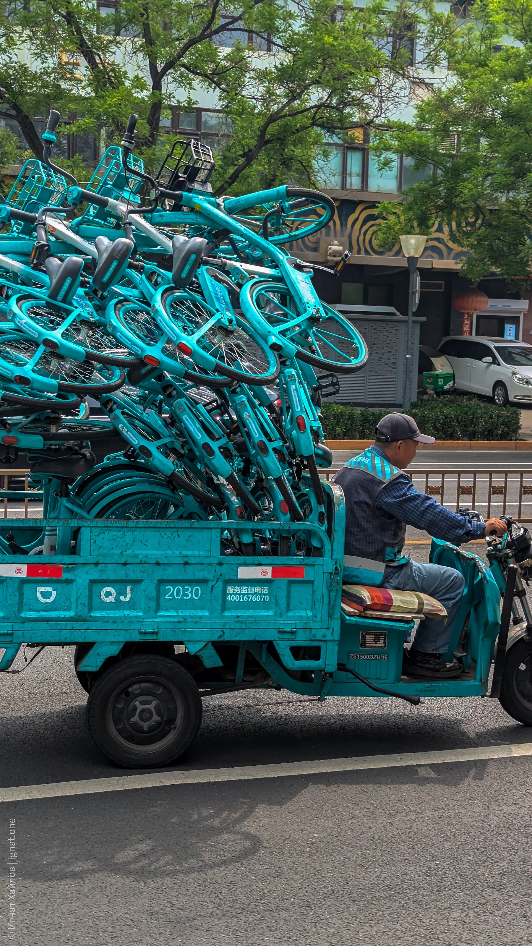 Пока шли, сфотографировал проезжающего мимо мужика, перевозившего велосипеды