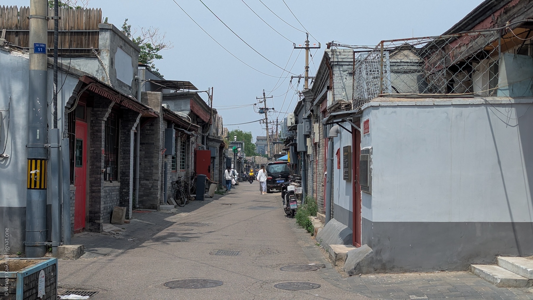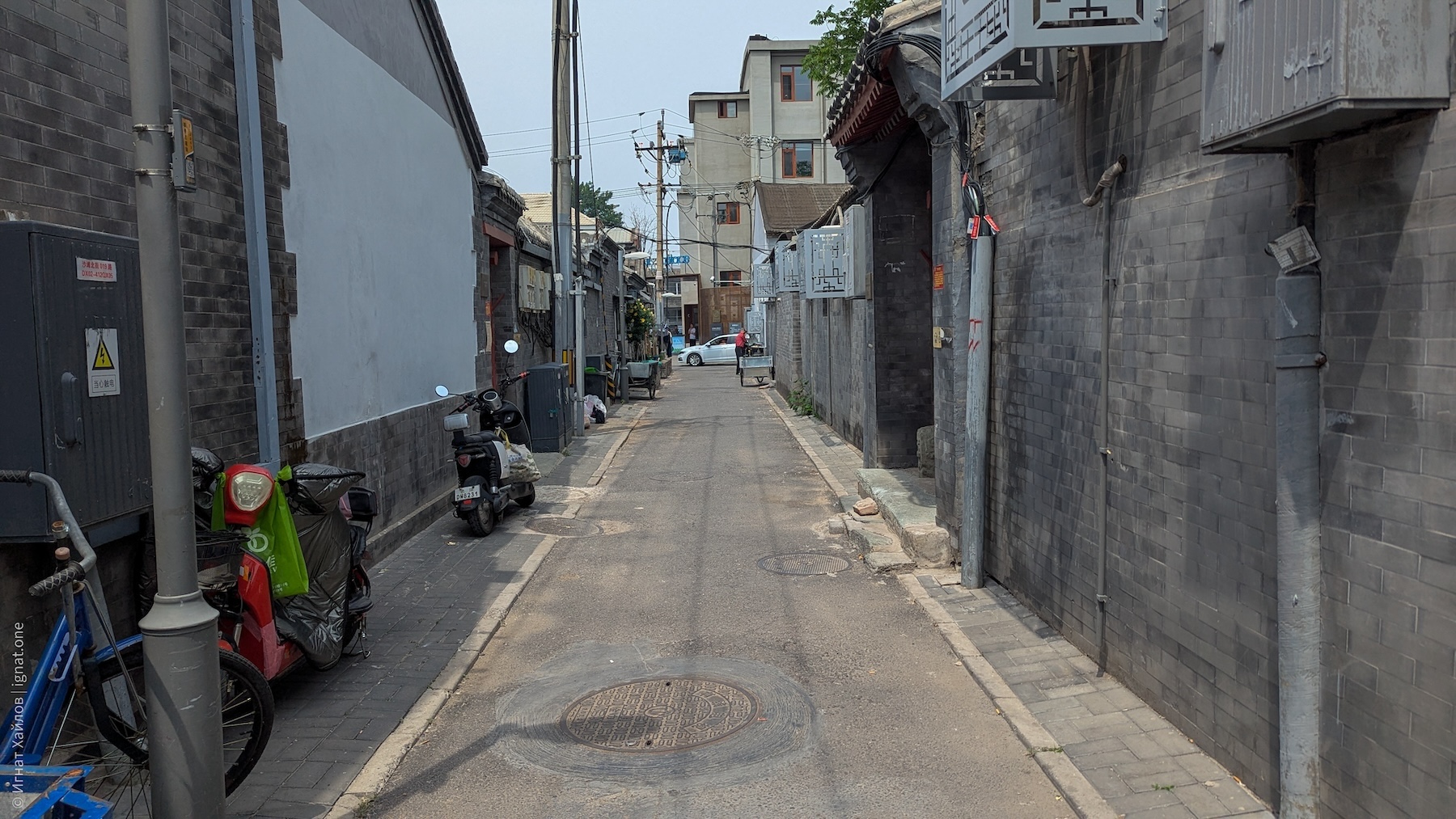 После того, как закончили осмотр парка, мы решили дойти до станции метро. Шли так же пешком, и маршрут вёл через хутоны — традиционные китайские переулочные кварталы, которые представляют собой лабиринты узких улочек и одноэтажных домов с серыми стенами.