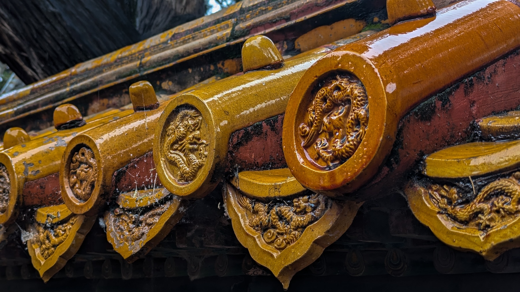 Самая узнаваемая постройка — Зал молитвы о хорошем урожае — круглое здание с ярко-голубой черепицей. Эта трехъярусная структура, возведенная без единого гвоздя в 1545 году и обновленная в 1757-м, покоится на мраморной платформе и увенчана золотистым шпилем, символизируя связь между небом и землей.