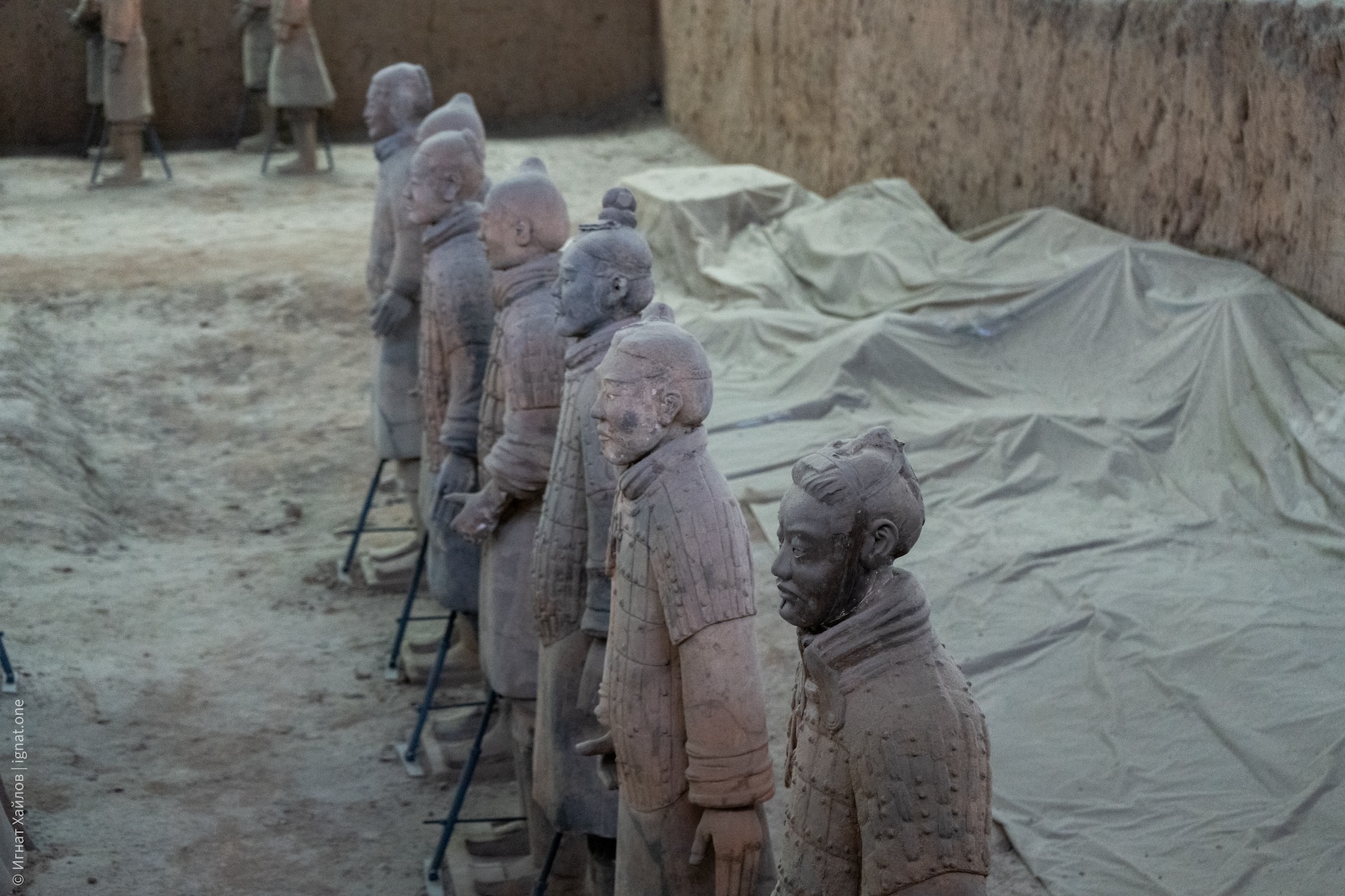 Хотя сама история терракотовой армии и ее обнаружения довольно интересная, но вот как-то ощутить ее в моменте у меня не вышло. А дело было так: в 1974 году местный фермер Ян Чжифа со своими братьями и соседом копал колодец на своем поле, когда на глубине около 5 метров они случайно наткнулись на фрагменты глиняных фигурок воинов и бронзовые наконечники стрел.