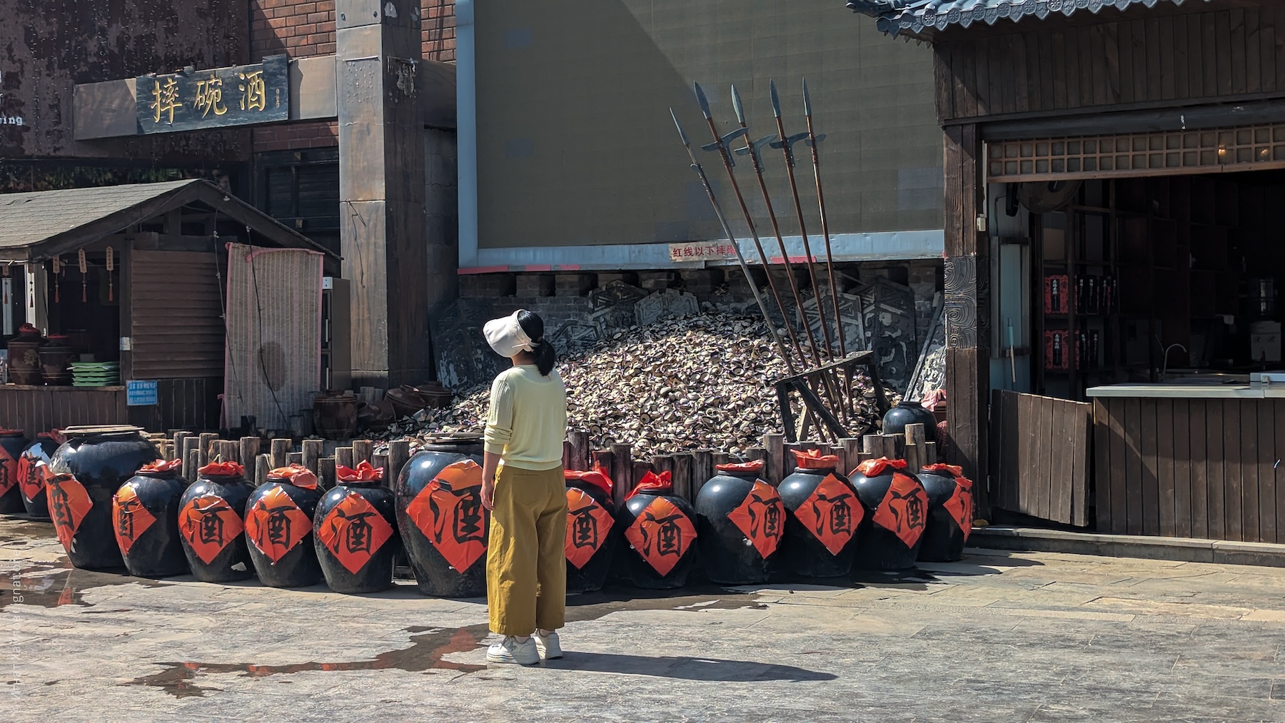 А вот тут был аттракцион: нужно было купить какую-то бормотуху, выпить ее, а блюдце разбить. На фотке — гора разбитой посуды