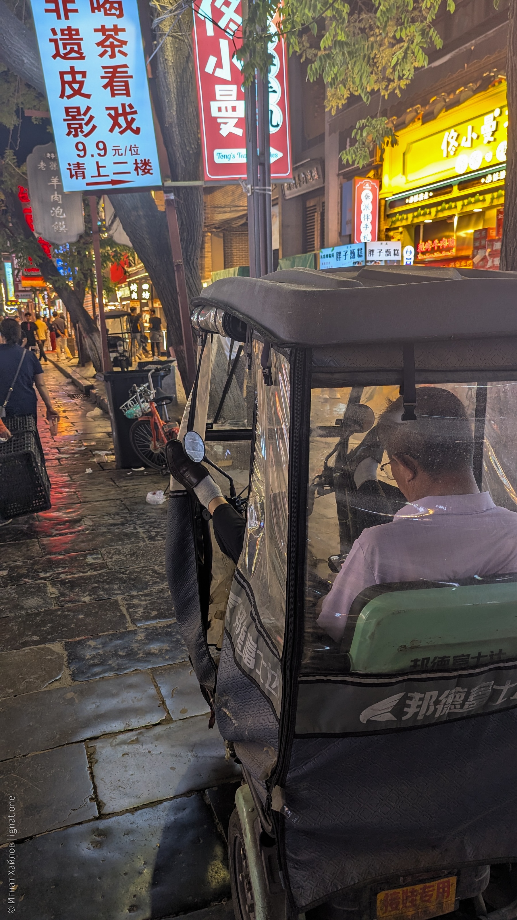 В Сиань мы прибыли поздно вечером, и первое впечатление от города было сильно подпорчено таксистами. Вот в чем дело: выйдя с вокзала, мы попытались вызвать такси через приложение DiDi, но, как я говорил, оно работает только с определенными точками вызова, ближайшая из которых находилась в десяти минутах ходьбы — что не слишком удобно, когда ты с чемоданами.