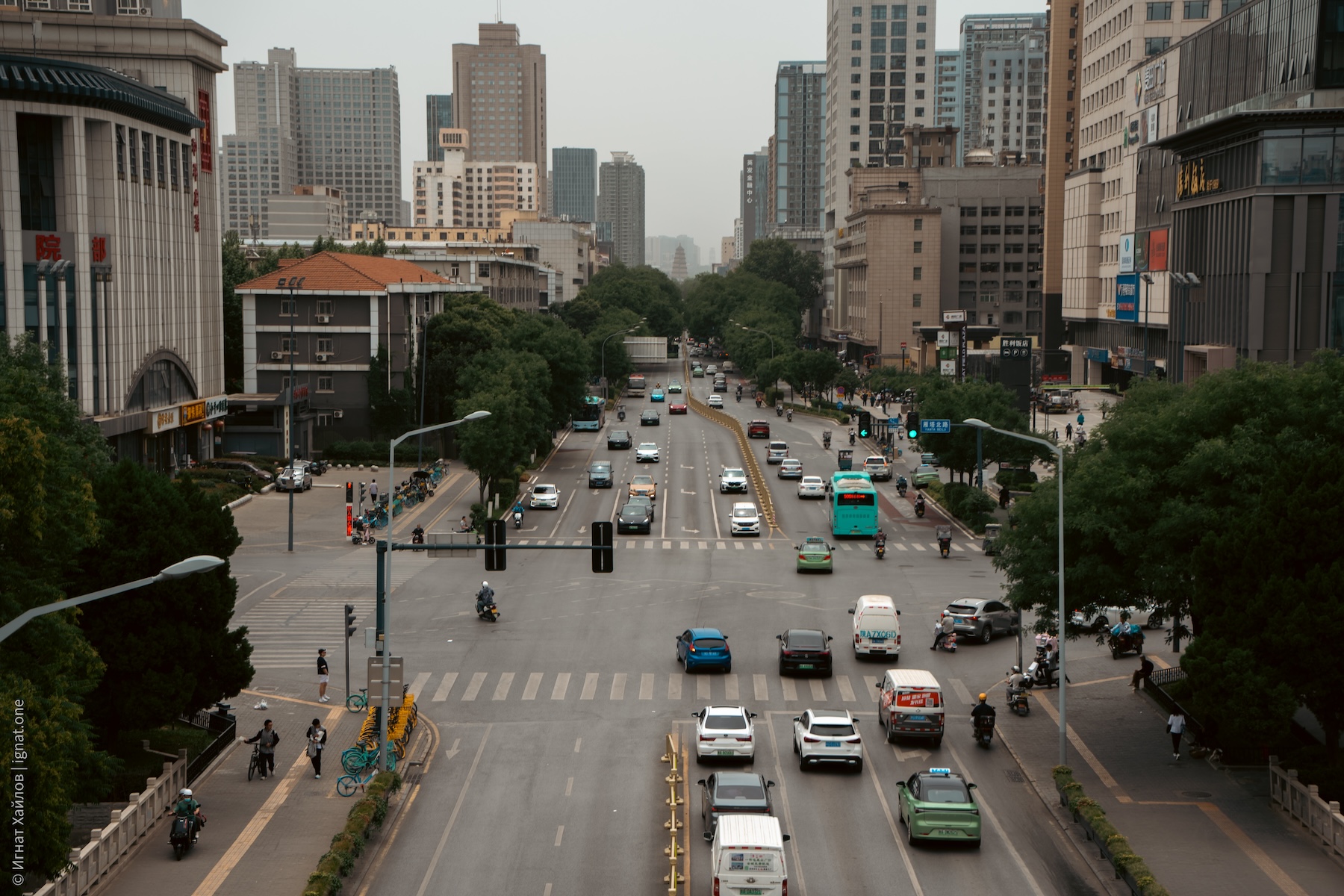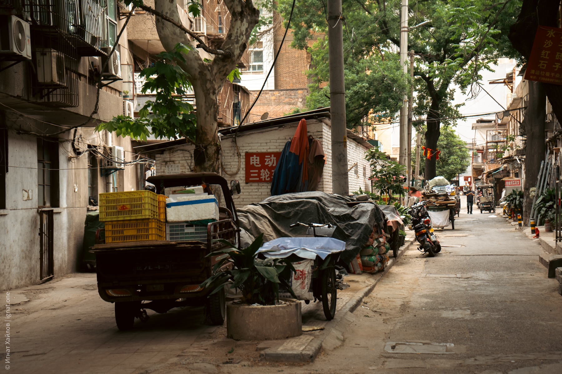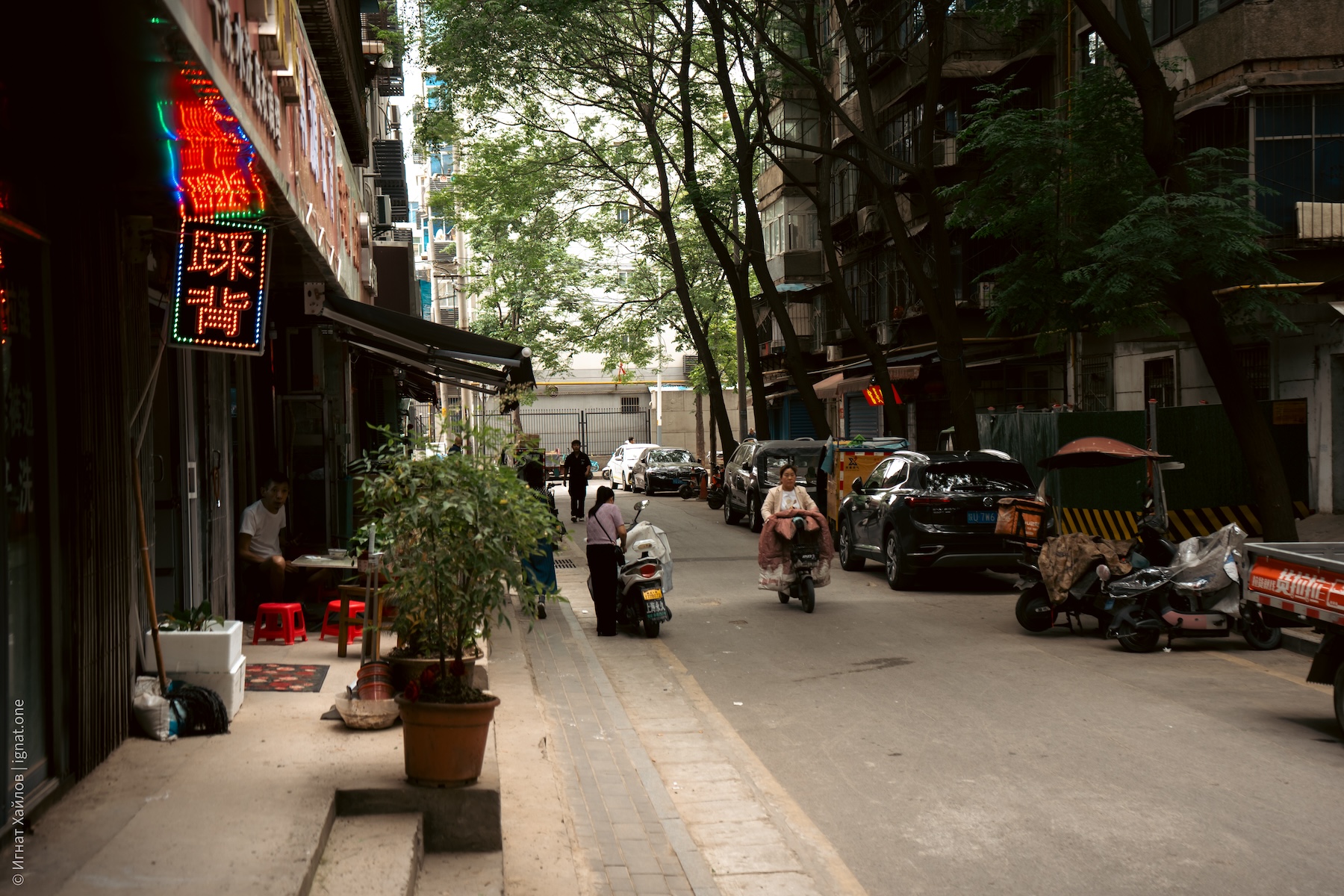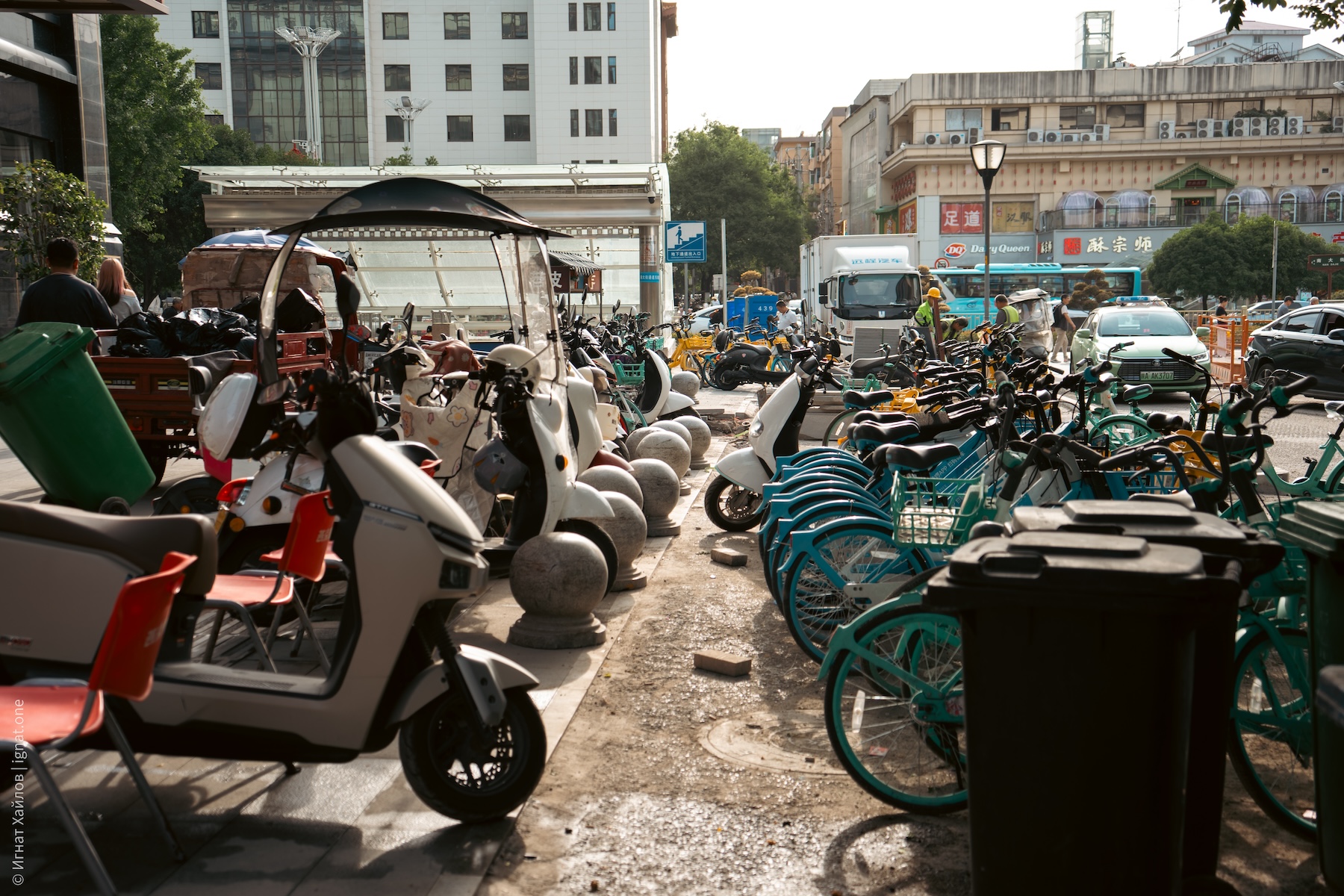 Сначала решили дойти до городской стены. По всему Китаю очень много вот таких хаотичных парковок со скутерами. И вообще, я заметил, что в целом скутеров на дорогах очень много