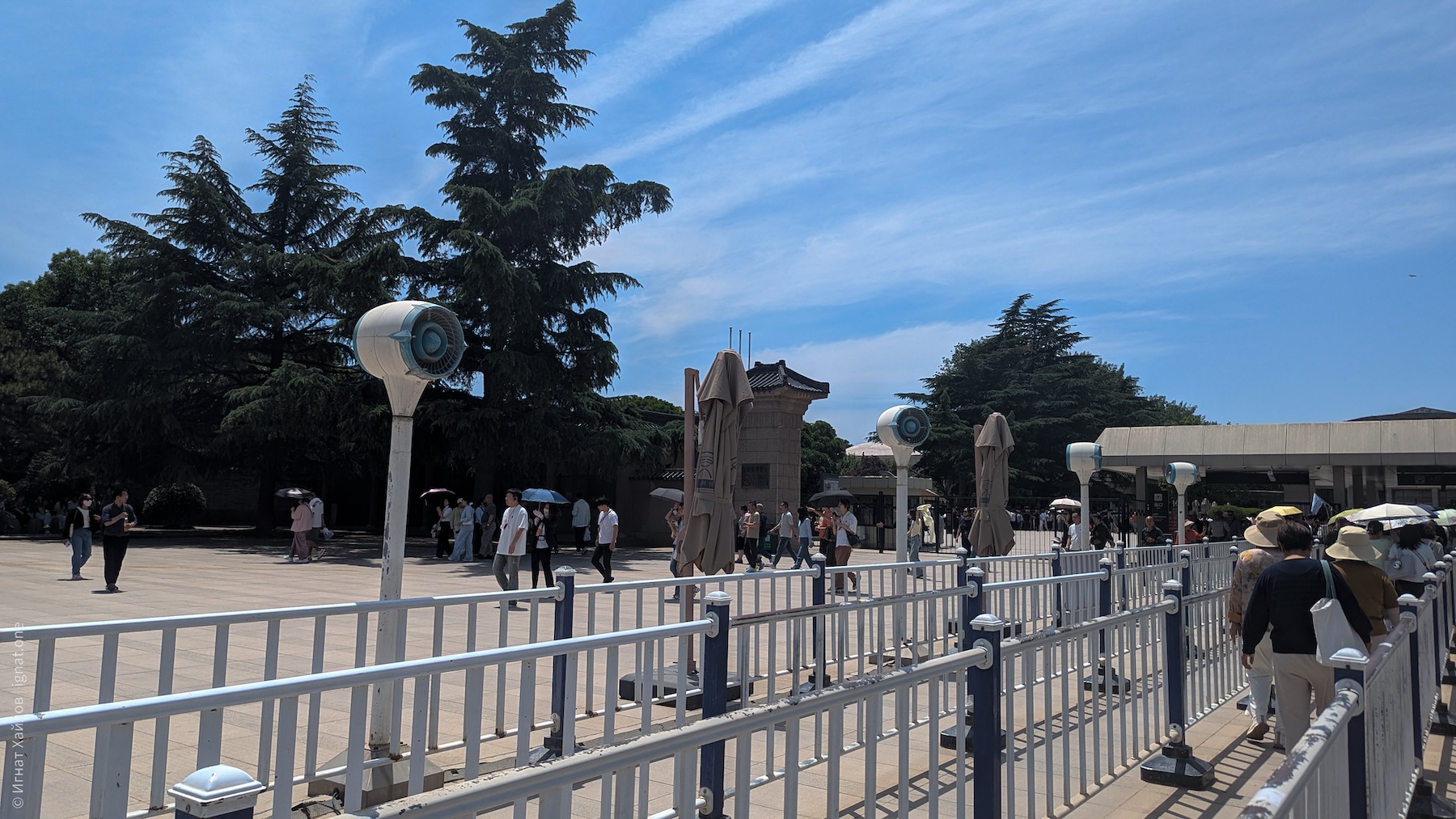 Вдоль ограды стояли обдувайки, которые в целом не сильно помогали справиться с жарой