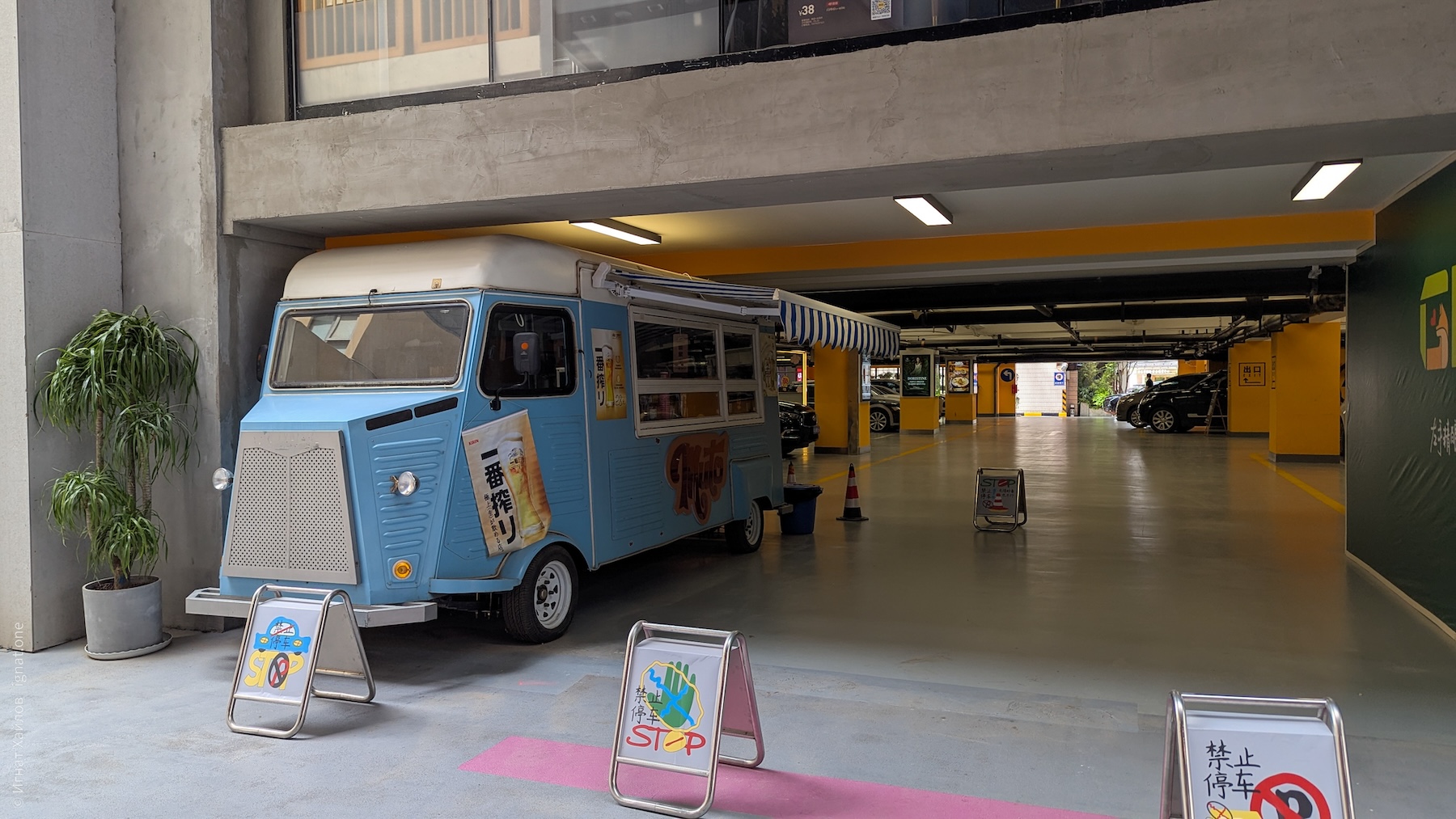 Перед тем как отправиться в парк, зашли на завтрак в ближайший ТЦ, на парковке которого заметил забавный фургон