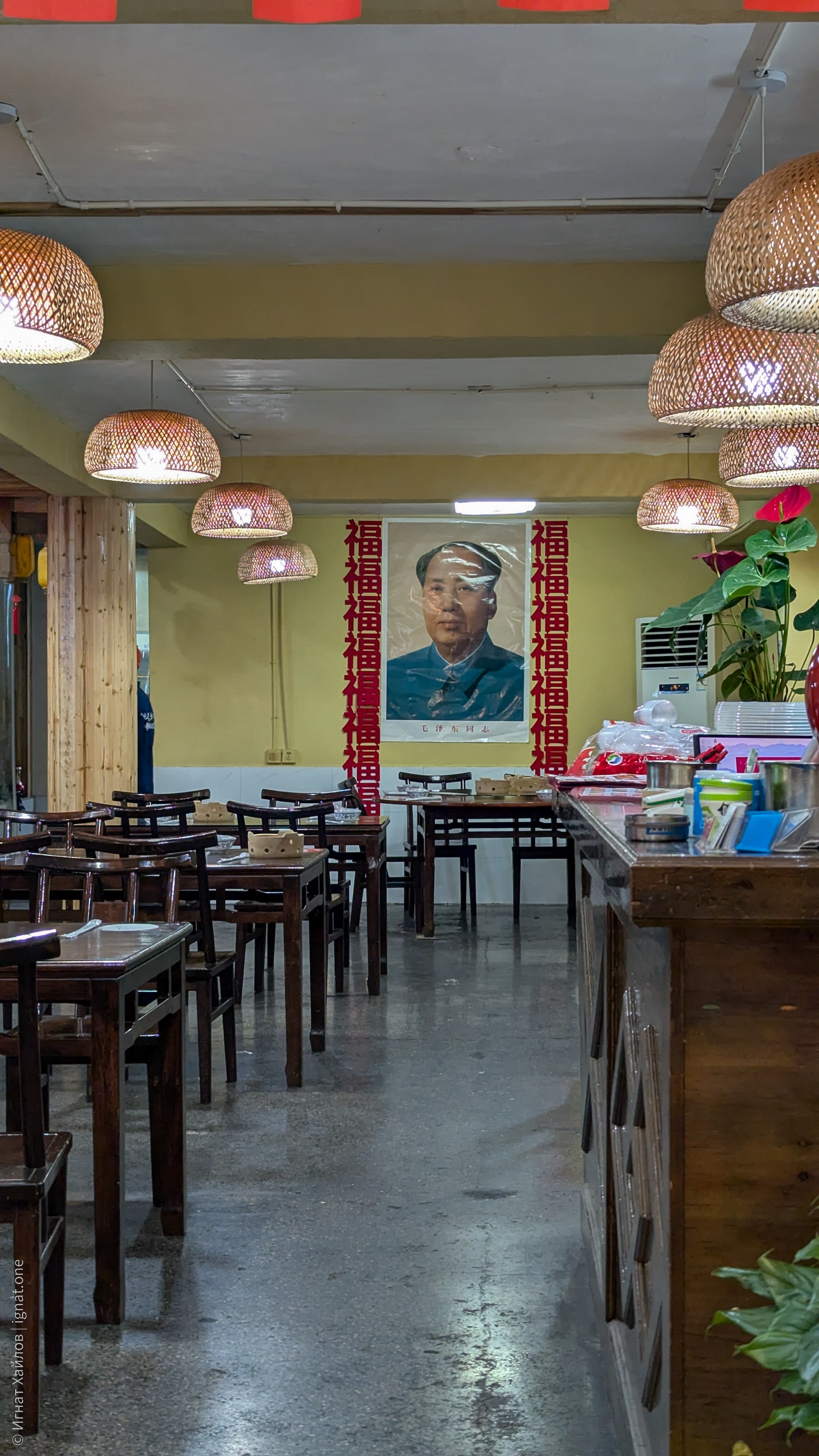 К нам подошла официантка и объяснила, что меню находится на стене: буквально, просто фотографии еды в низком разрешении, все надписи на китайском. На фотографиях блюда выглядели одинаковыми, учитывая особенности китайской кухни, особенно в далеких от крупных городов провинциях, было непонятно, что брать.