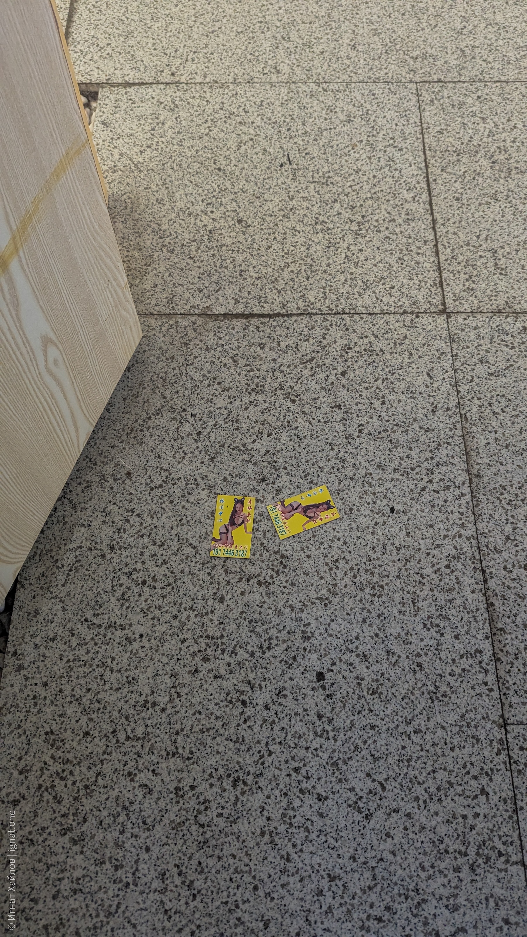 Когда вечером вернулись обратно в гостиницу, в коридоре обнаружил визитки, которые мы уже встречали в Сиане