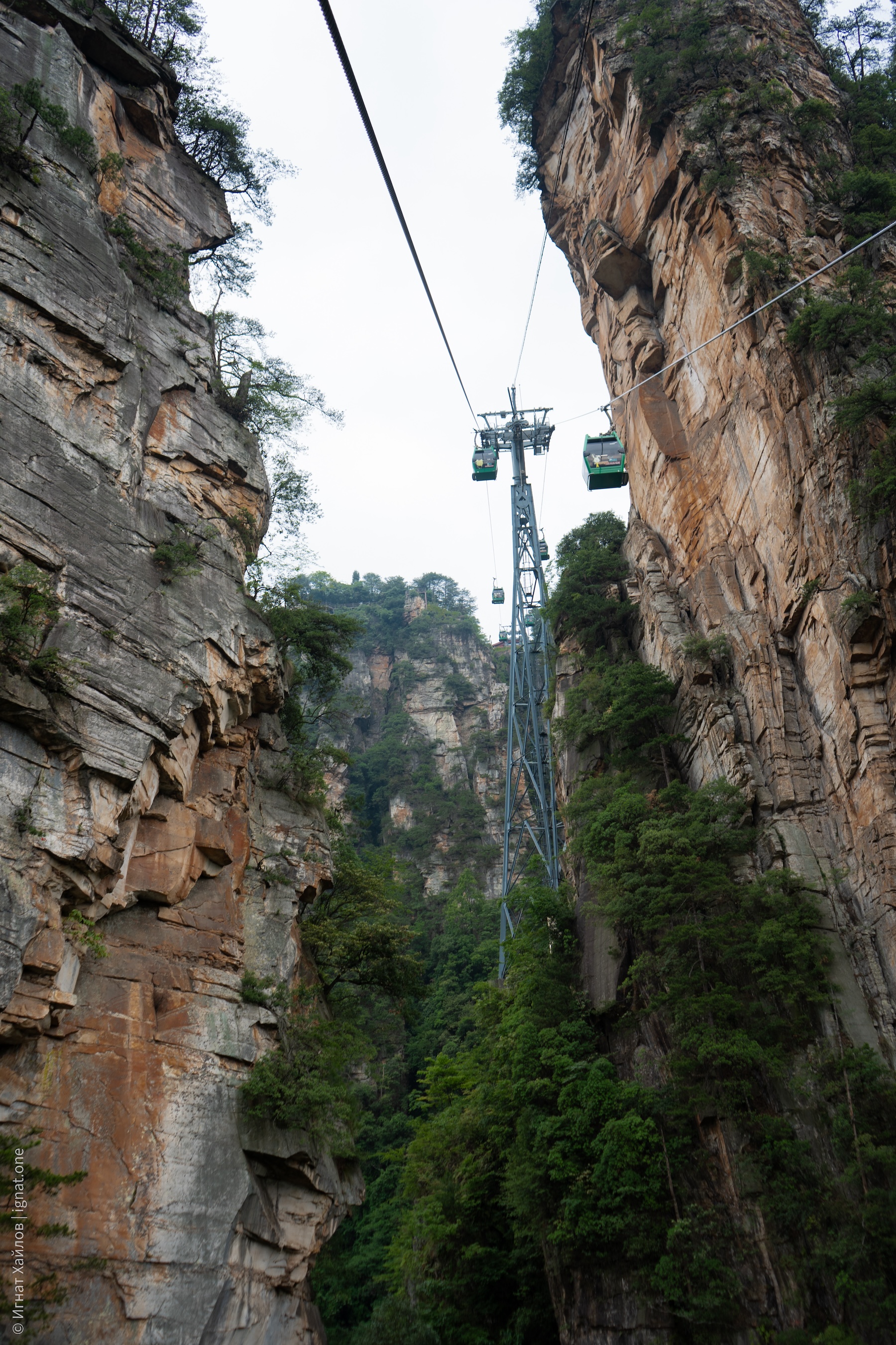 Поднимаемся наверх. Мне кажется, это самая красивая канатная дорога, по которой я ездил. Особенно когда кабина медленно проплывает между скалами.