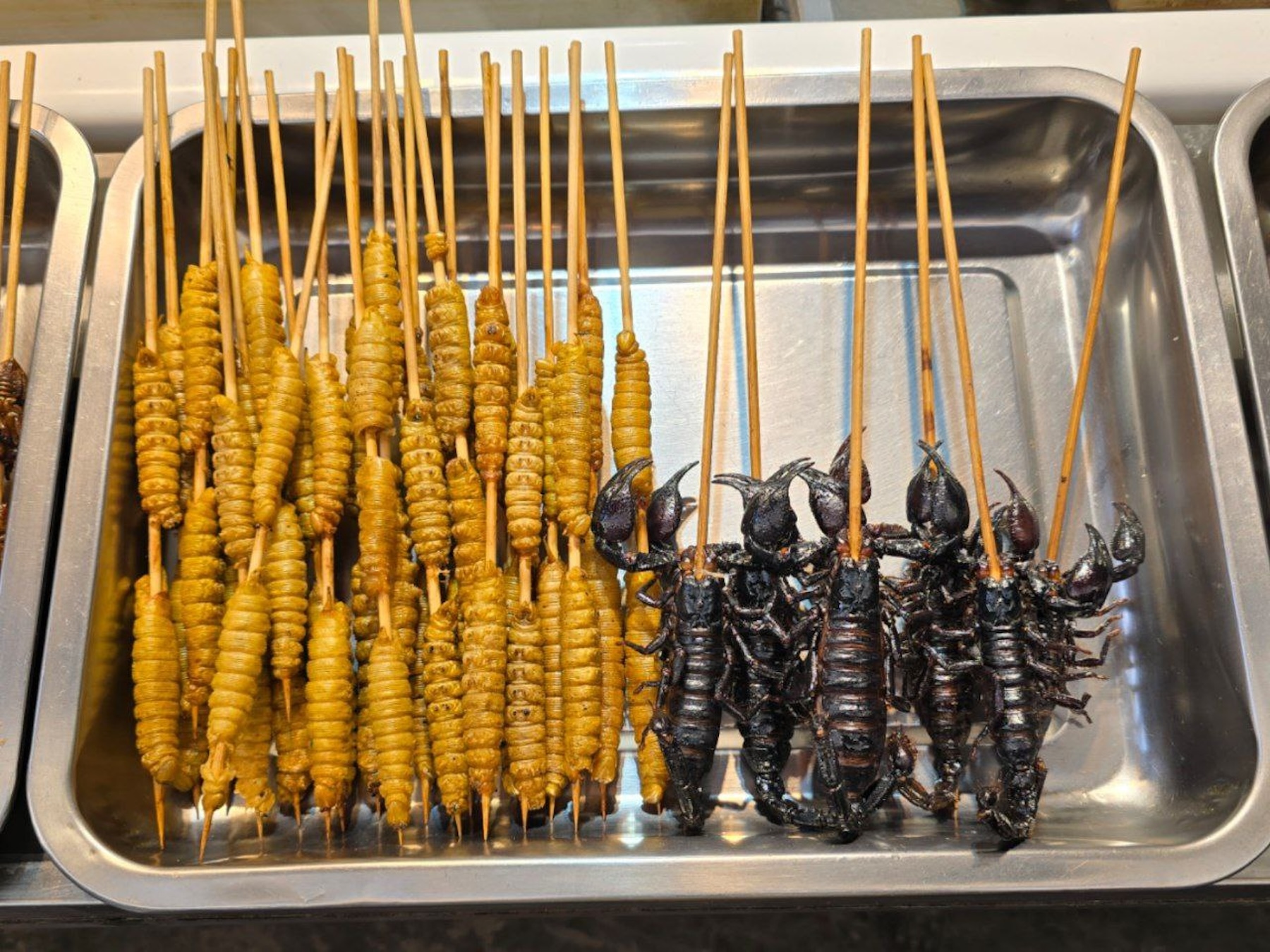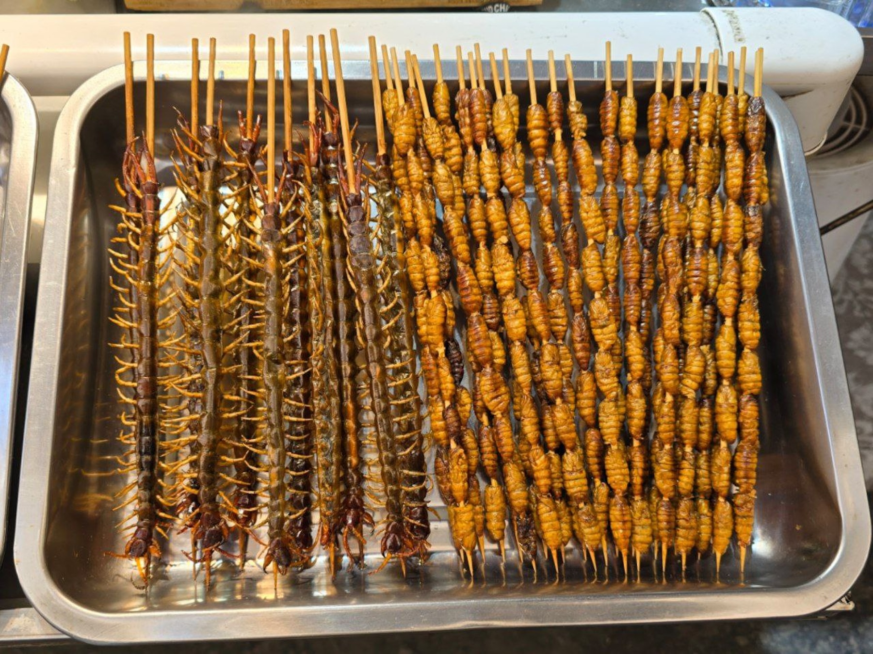 Нашли ларек, в котором продавали всяких жуков на шпажках