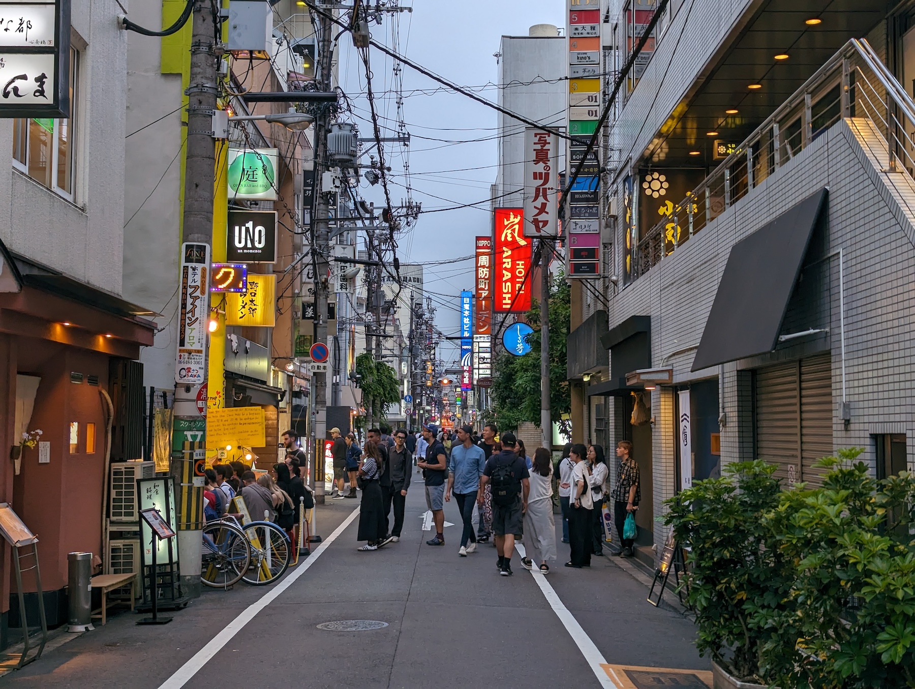 Выходим на улицу чуть-чуть пройтись, посмотреть город. Не знаю, возможно из-за расположения нашей гостиницы, но Осака произвела на меня впечатление более движового города, чем Токио