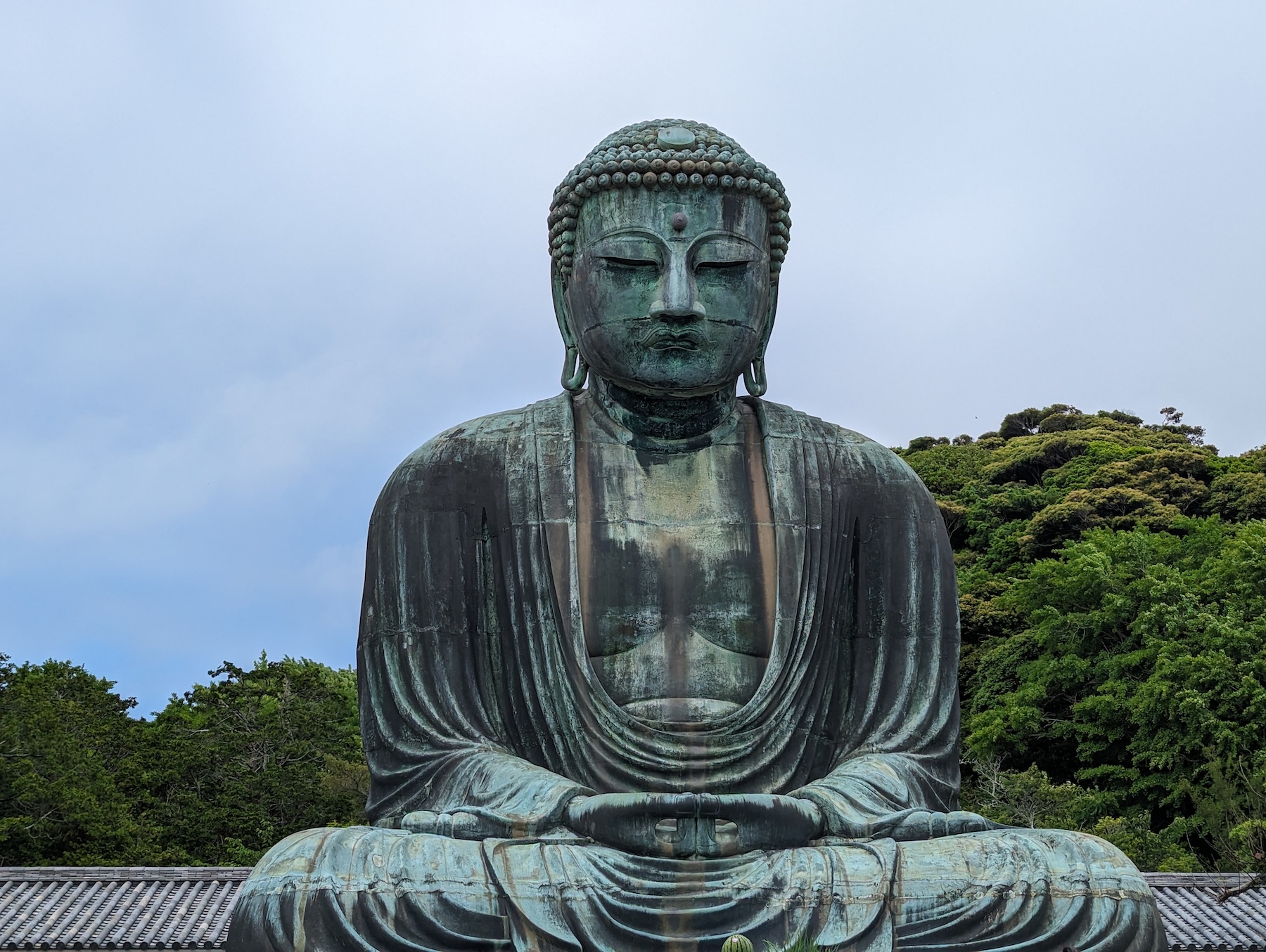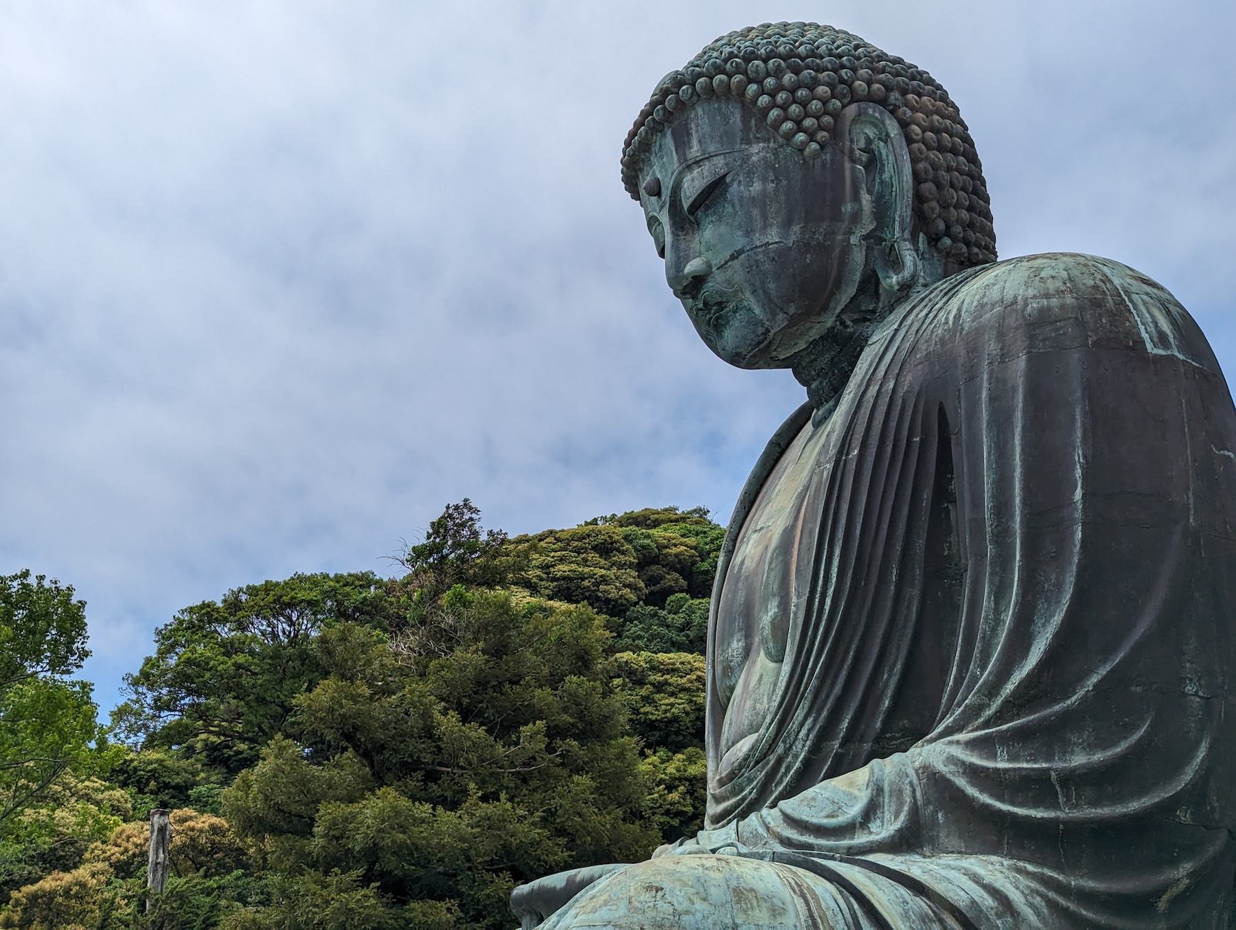 Это бронзовая статуя Будды Амиды, высотой почти 13,35 метров и весом около 121 тонны. Она находится на территории храма Котоку-ин и является второй по величине бронзовой статуей Будды в Японии, после Дайбуцу в Наре, которую мы тоже посетим.
