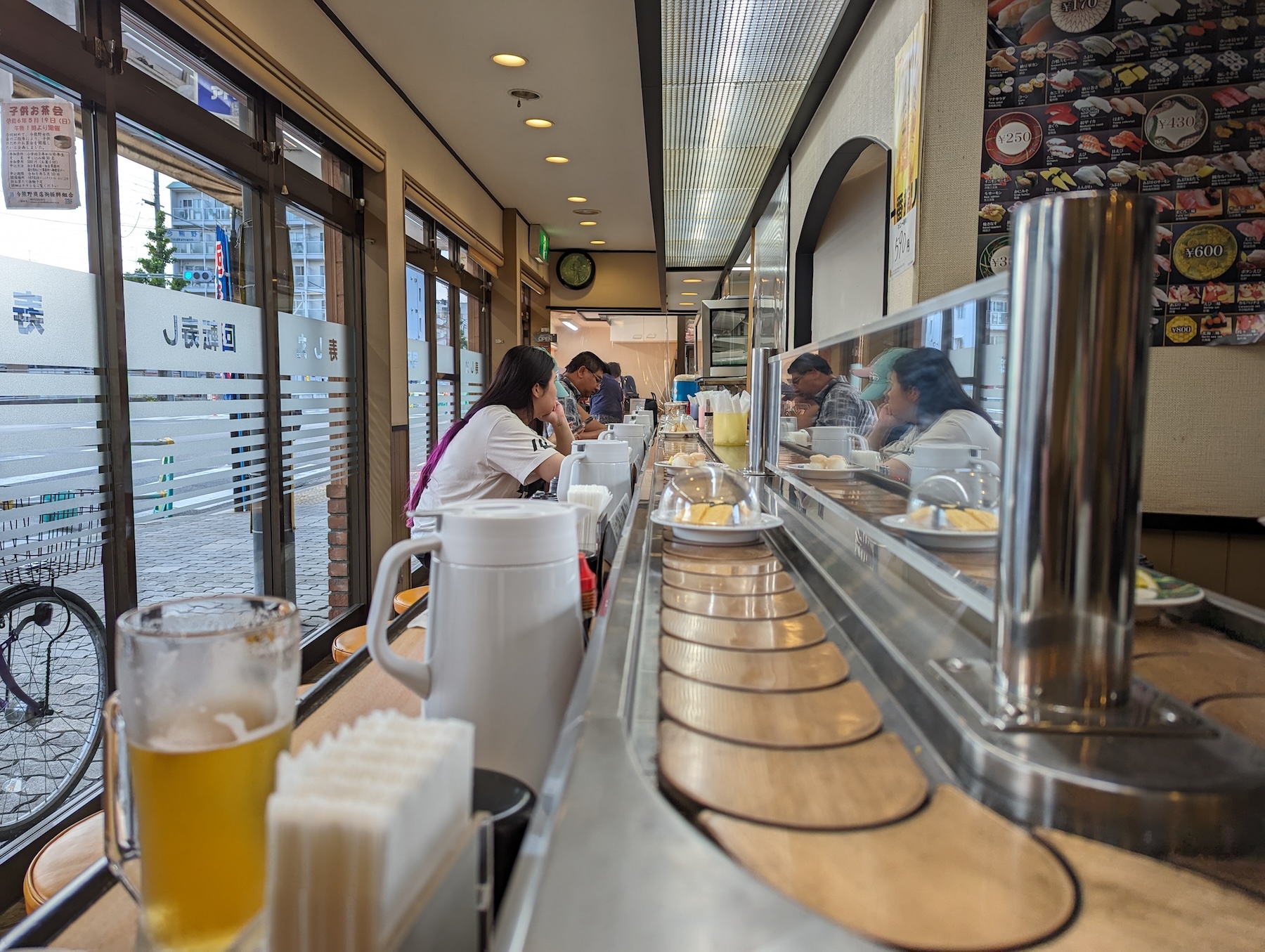 Добираемся до кафе, чтобы еще раз попробовать лучшую еду в Японии. Суши и светлое пиво — это комбинация