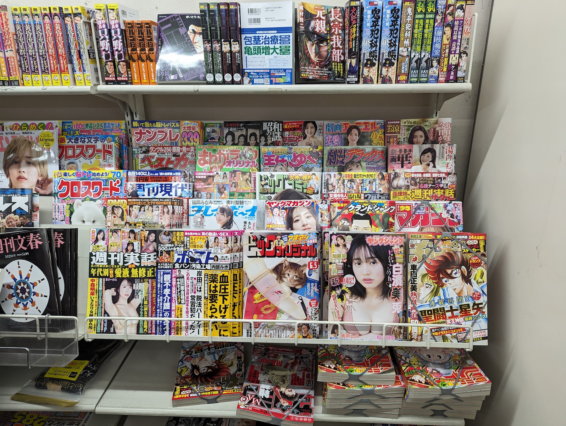 По дороге зашли в какой-то продуктовый a.k.a. комбини, на входе совершенно свободно вместе с мангой расположены +18 журналы