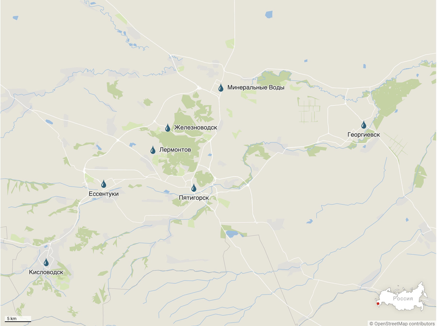 Вообще Кавказские Минеральные Воды — это регион Ставропольского края, в который включают несколько курортных городов — собственно, сами Минеральные Воды, Пятигорск, Кисловодск, Ессентуки и Железноводск.