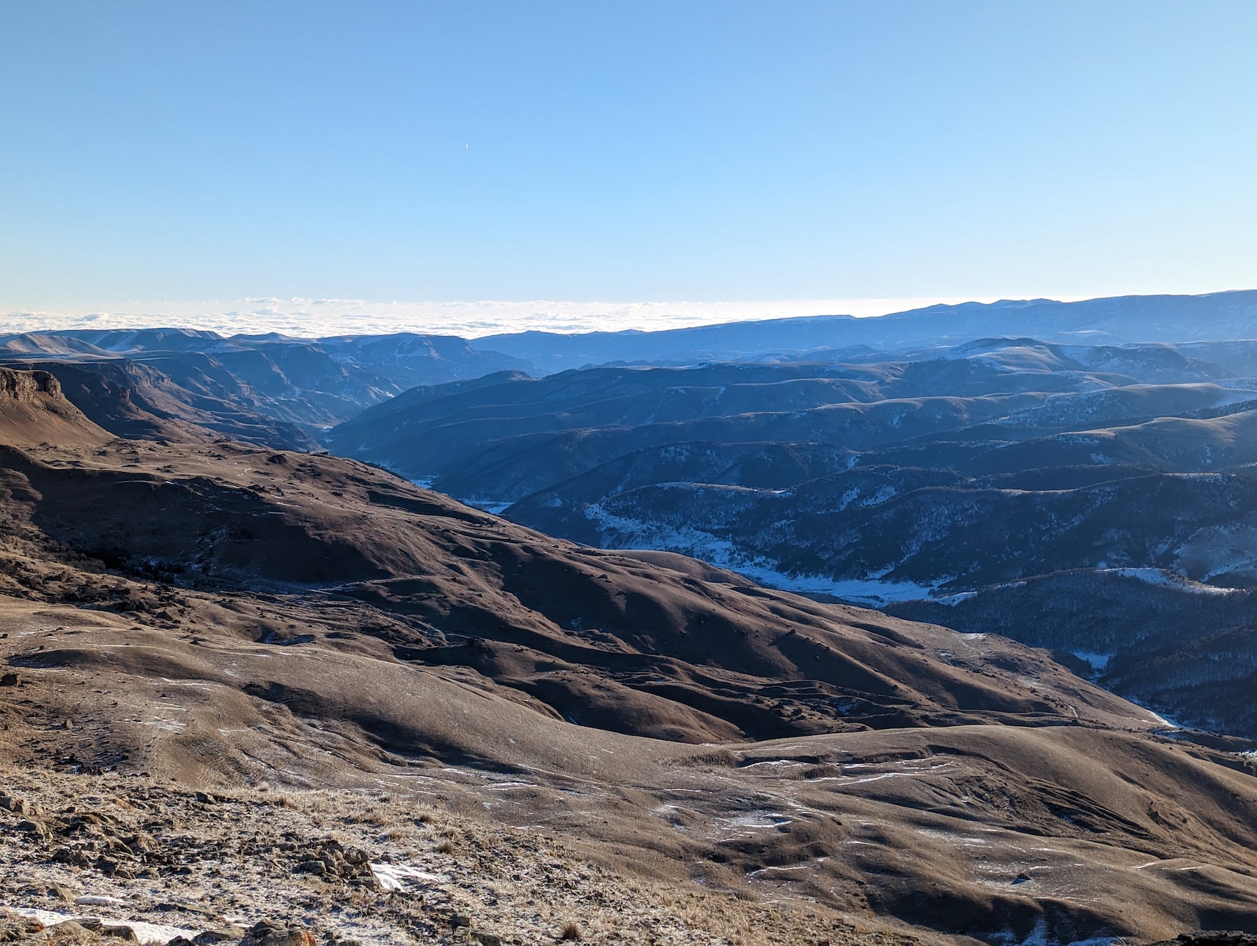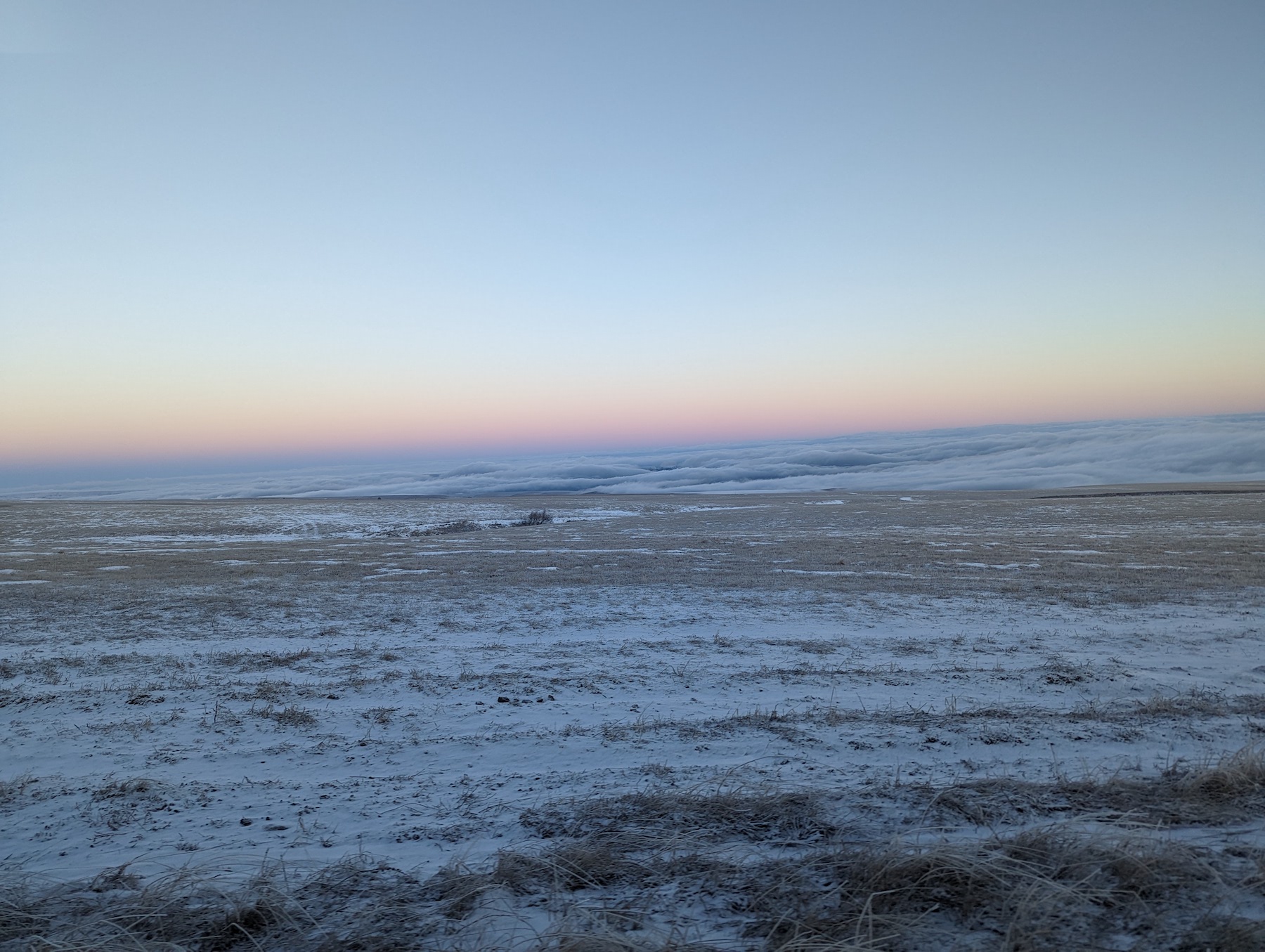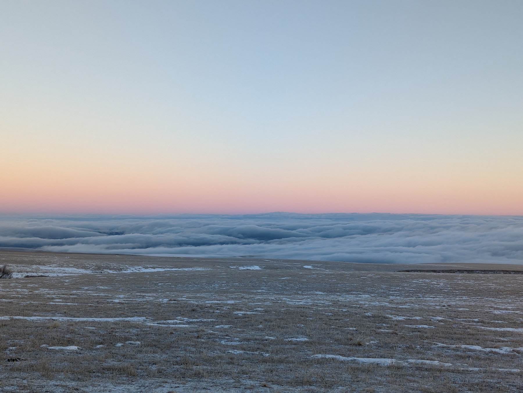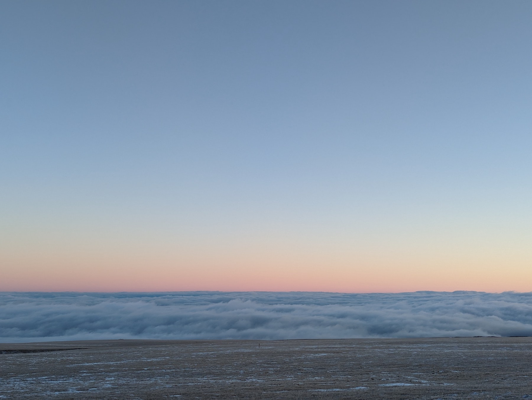 Так как мы выехали еще до восхода солнца, то сам рассвет мы встретили уже на плато. Не помню, какая была высота над уровнем моря, но просто посмотрите, как стелились облака: