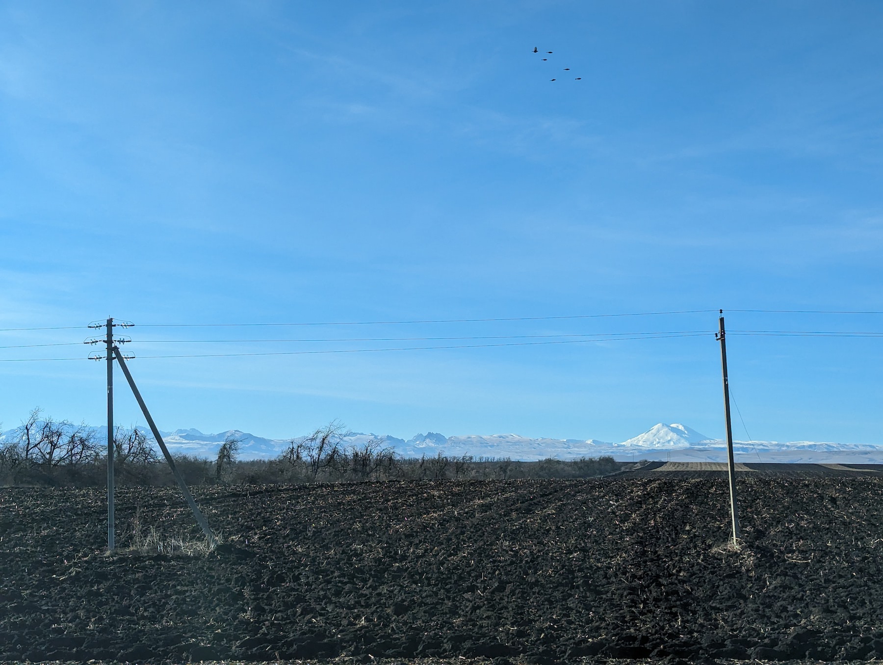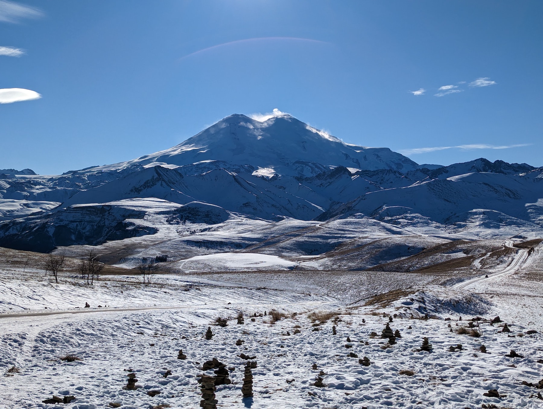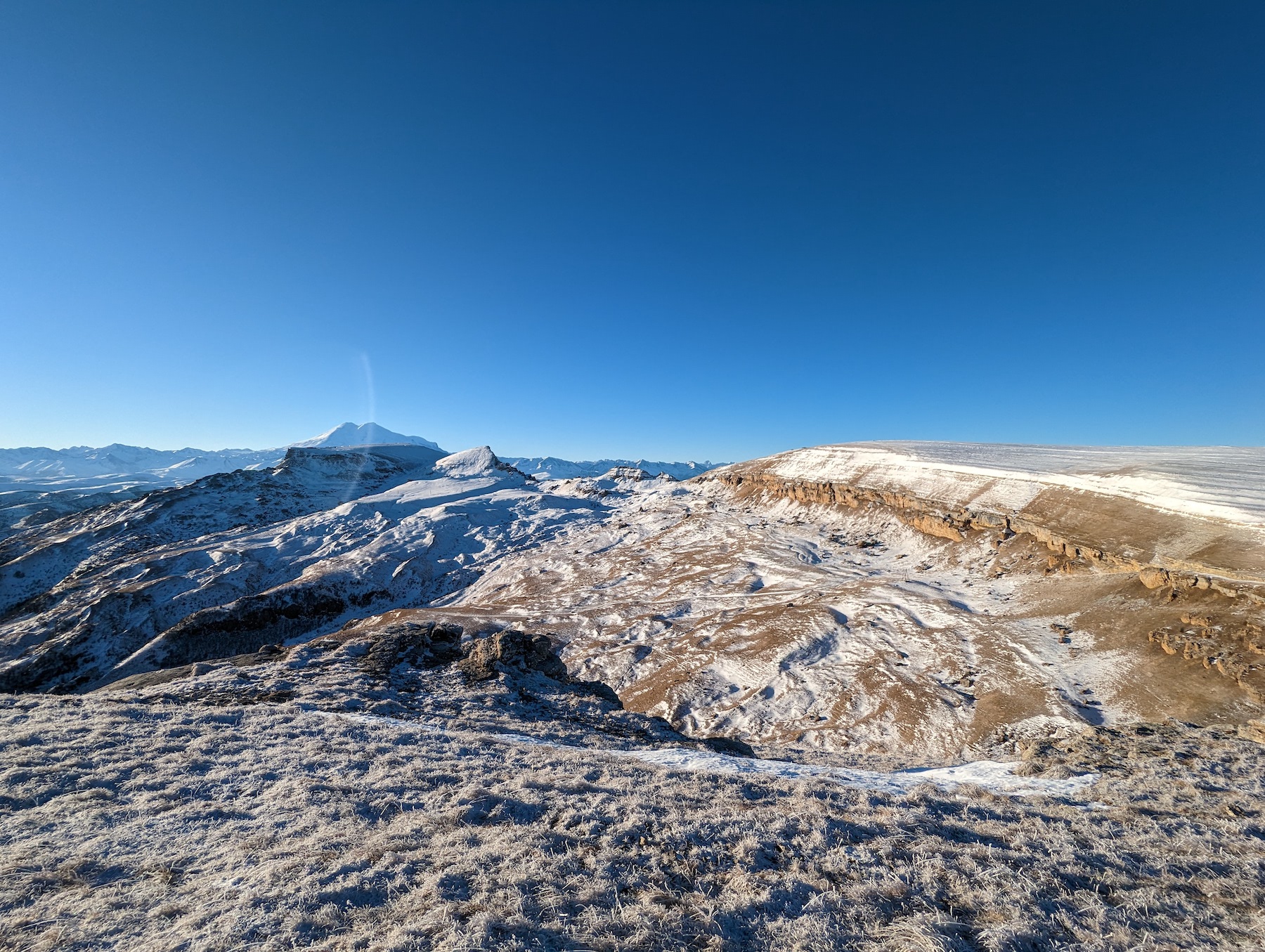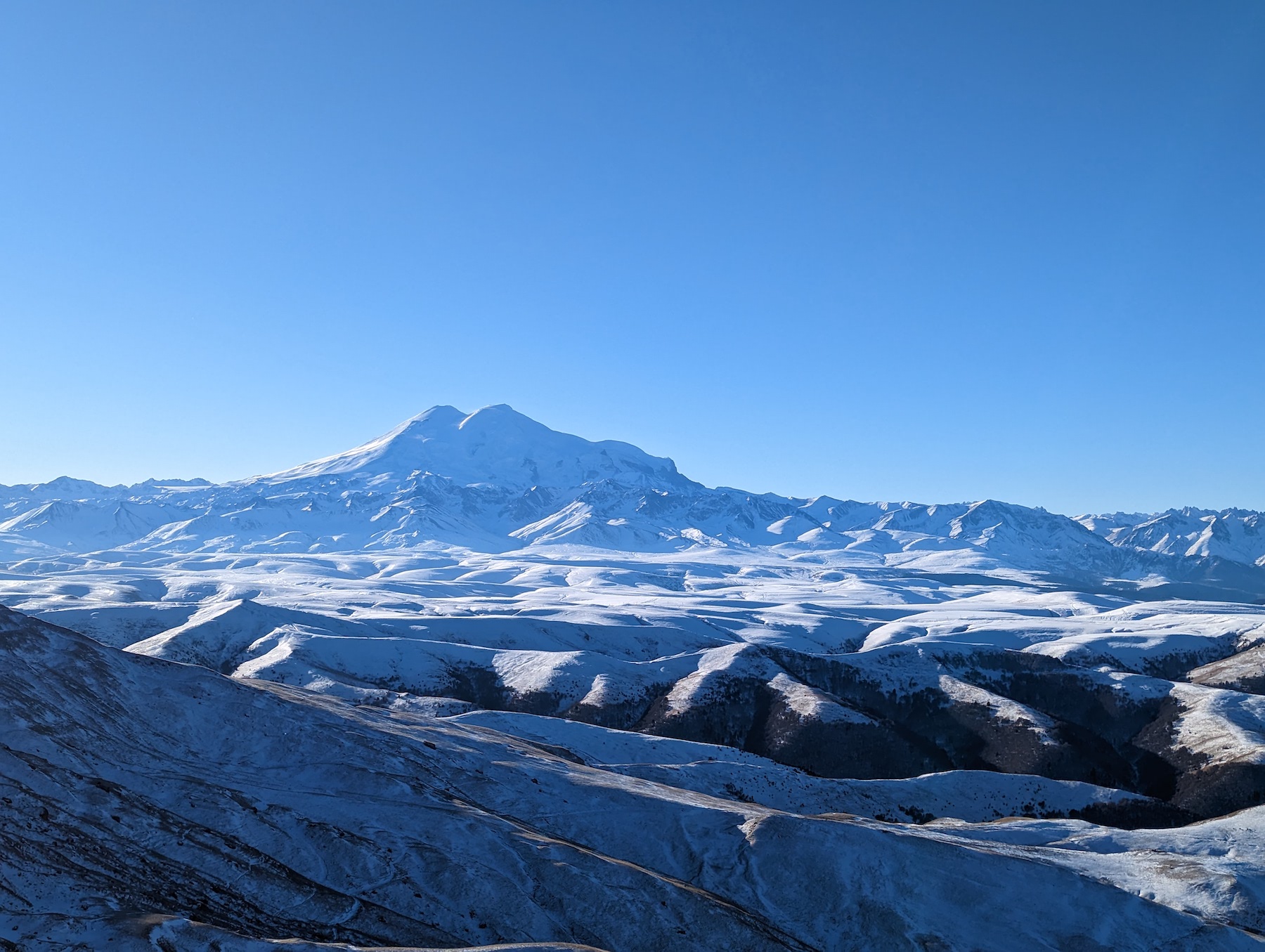 Хребет Кавказских гор и Эльбрус — мы их еще не раз встретим.