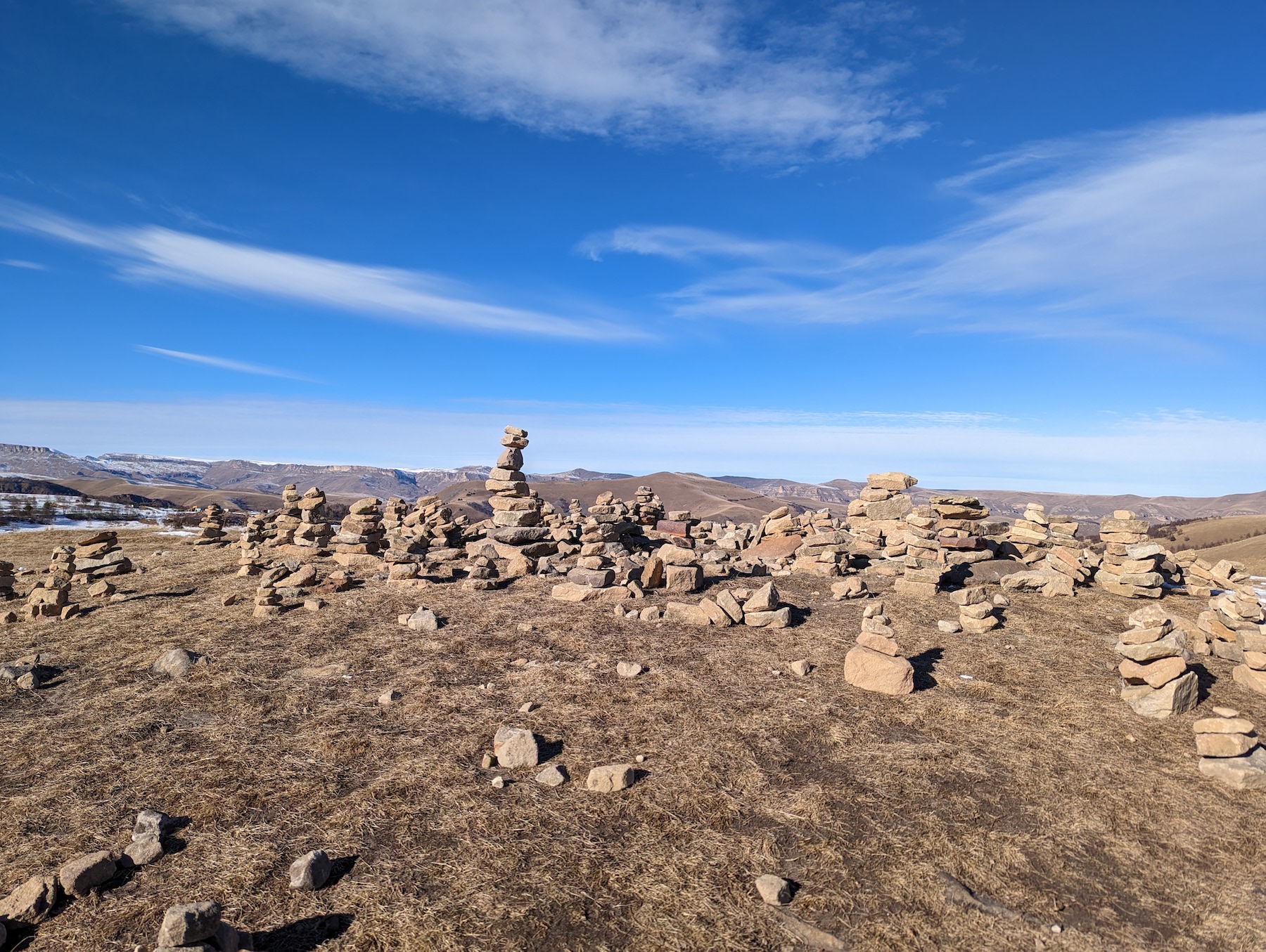 А здесь туристы собирают башенки из камней, чтобы когда-нибудь вернуться обратно, по аналогии с монеткой