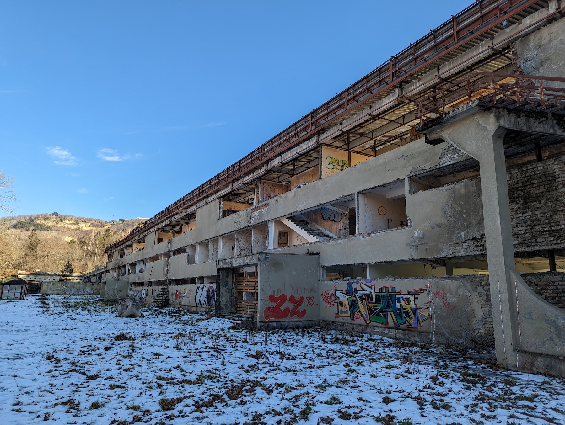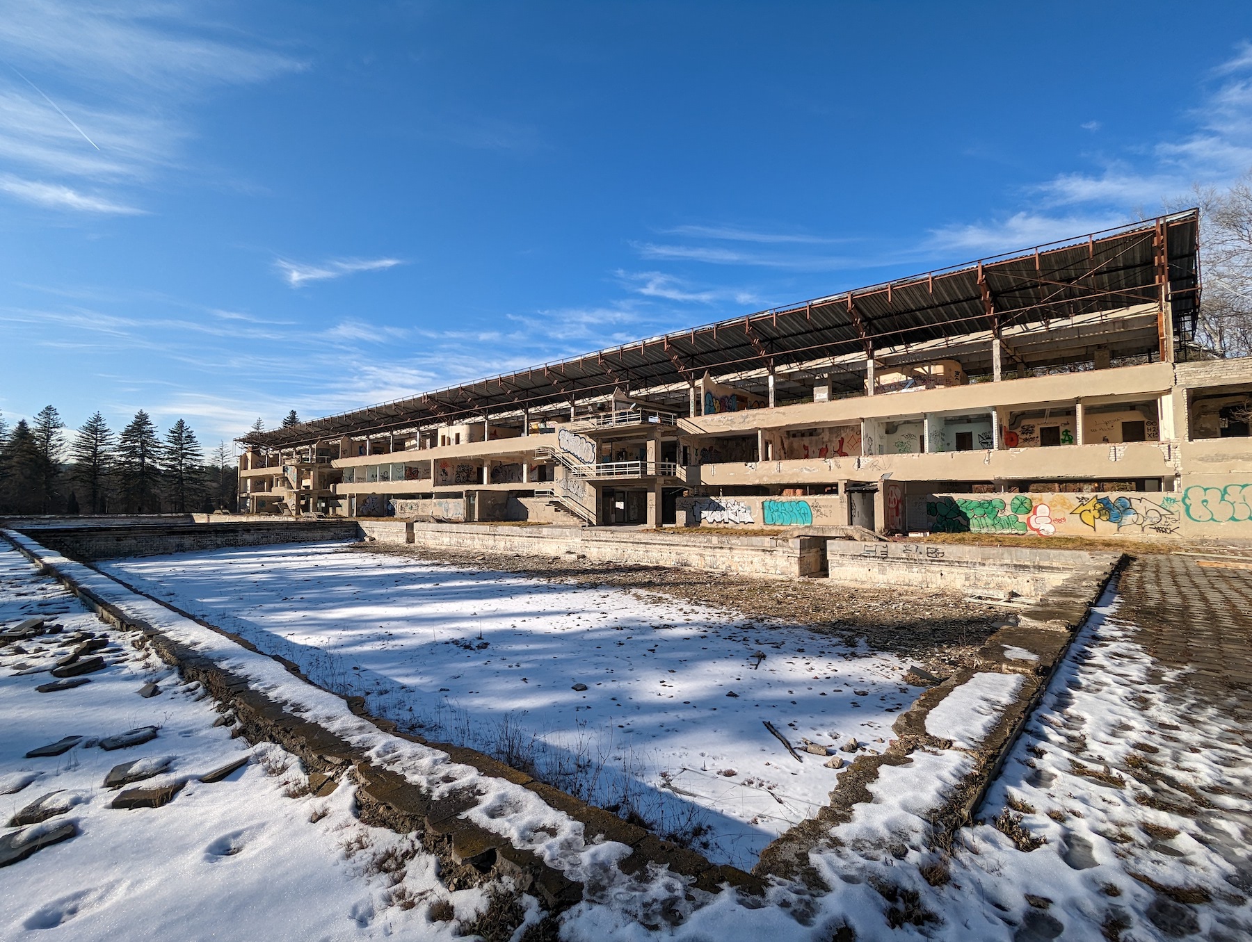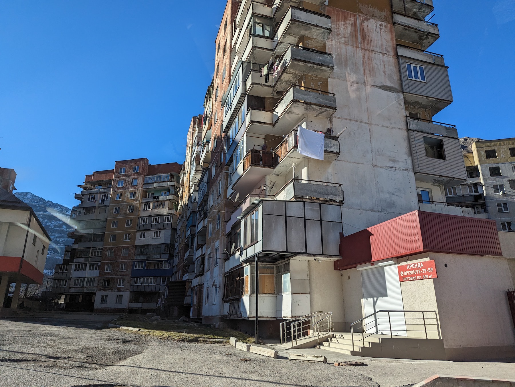 На самом деле, из всей программы меня больше всего интересовал Тырныауз. Когда я искал, что посмотреть в районе Кавказских Минеральных Вод, этот город очень привлек меня во-первых, своим расположением, на фото, которые я встречал в интернете, открывалась панорама города на фоне гор, а во-вторых, своим апокалиптическим видом — у меня есть фетиш на всякие советские заброшки.