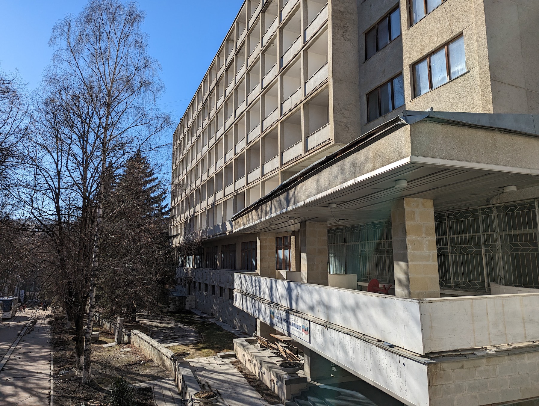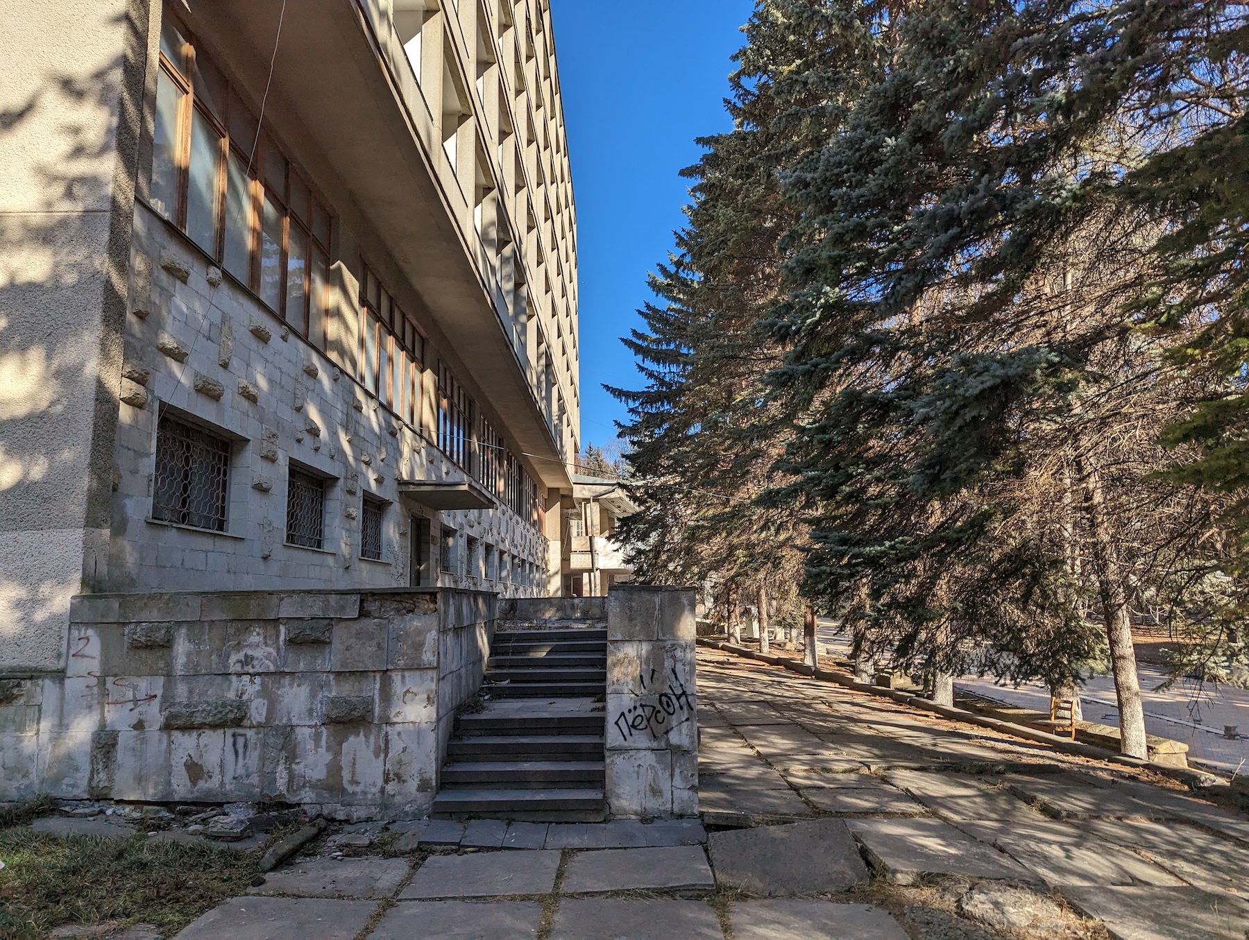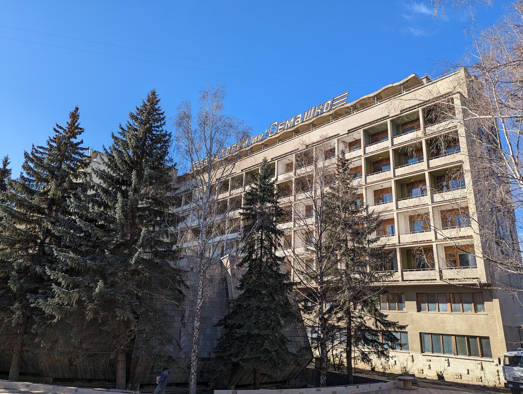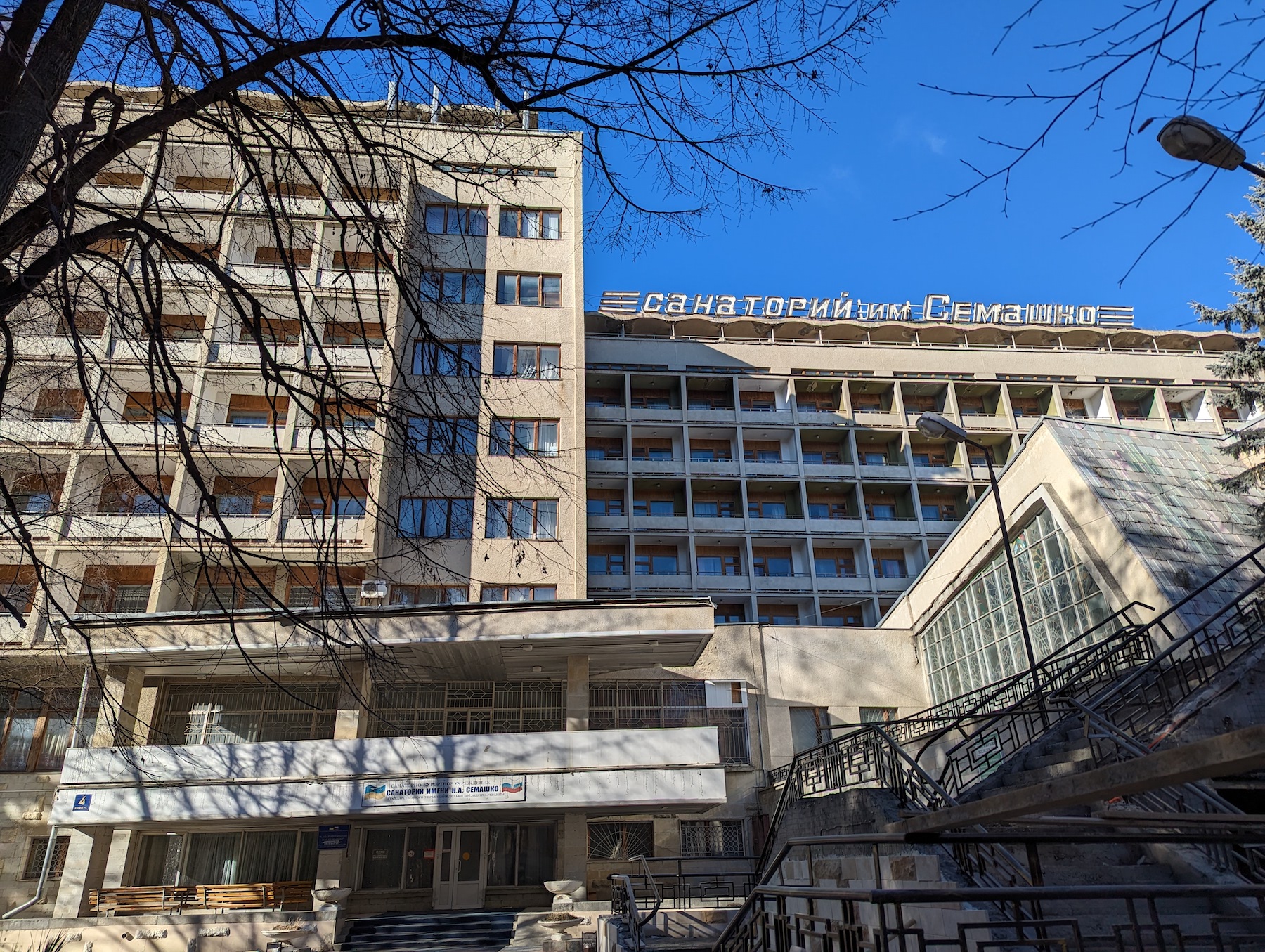 Замечаем санаторий им. Семашко, и так как у меня есть фетиш на советские здания, не проходим мимо, а фотографируем его со всех сторон: