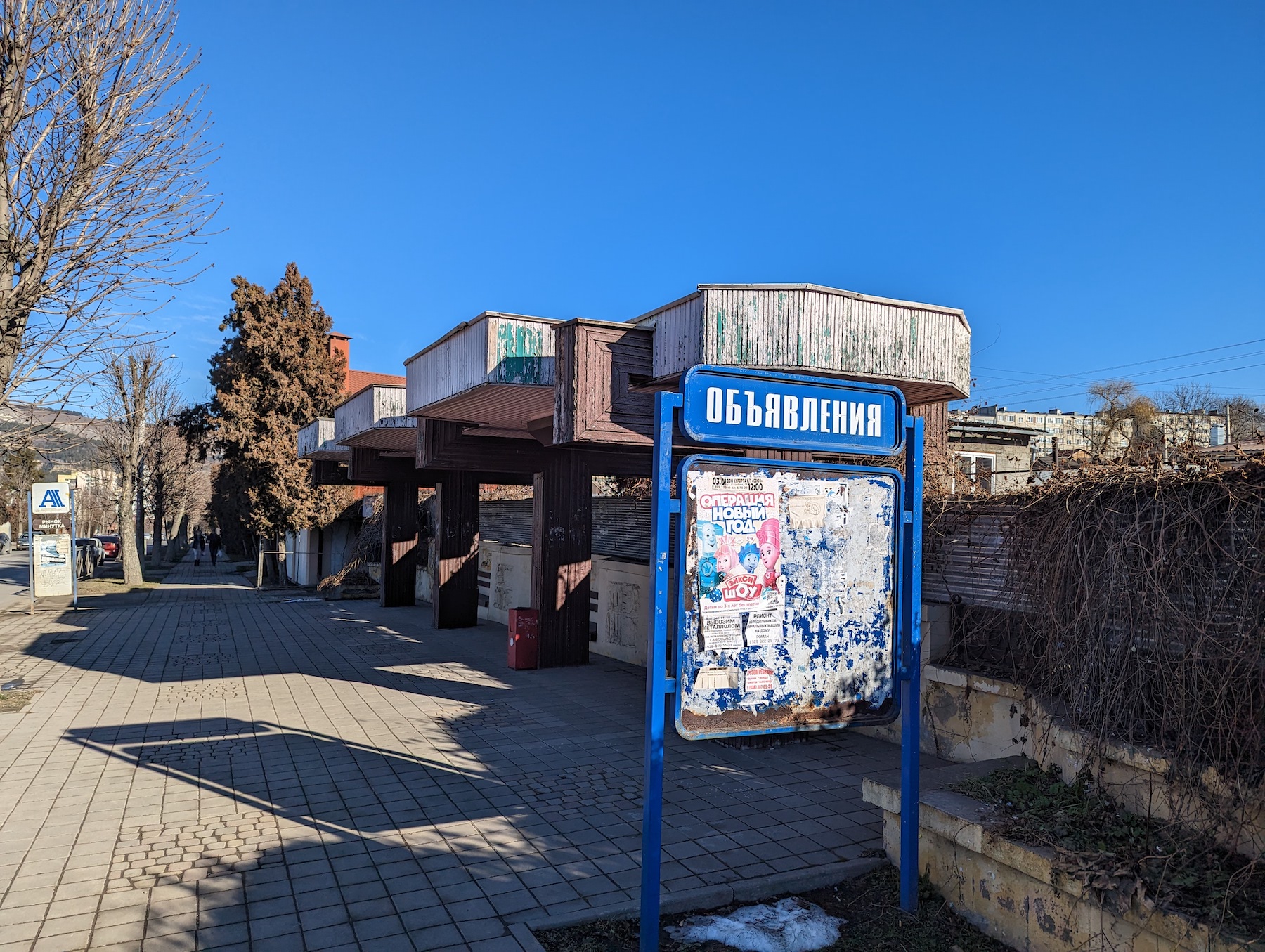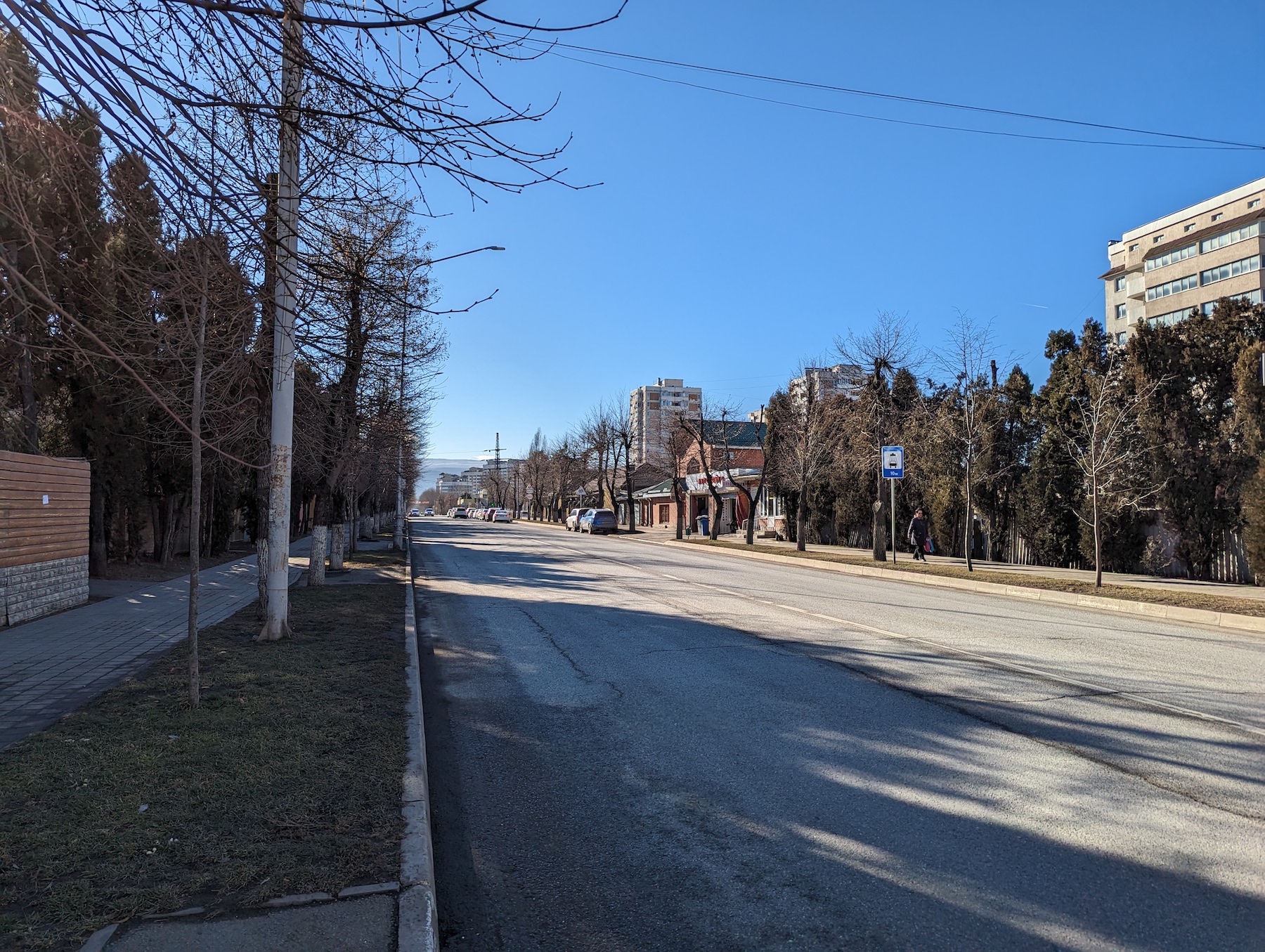 Выходим на главный проспект и идем в центр. Прикольная остановка, на которой нет ни одного человека:
