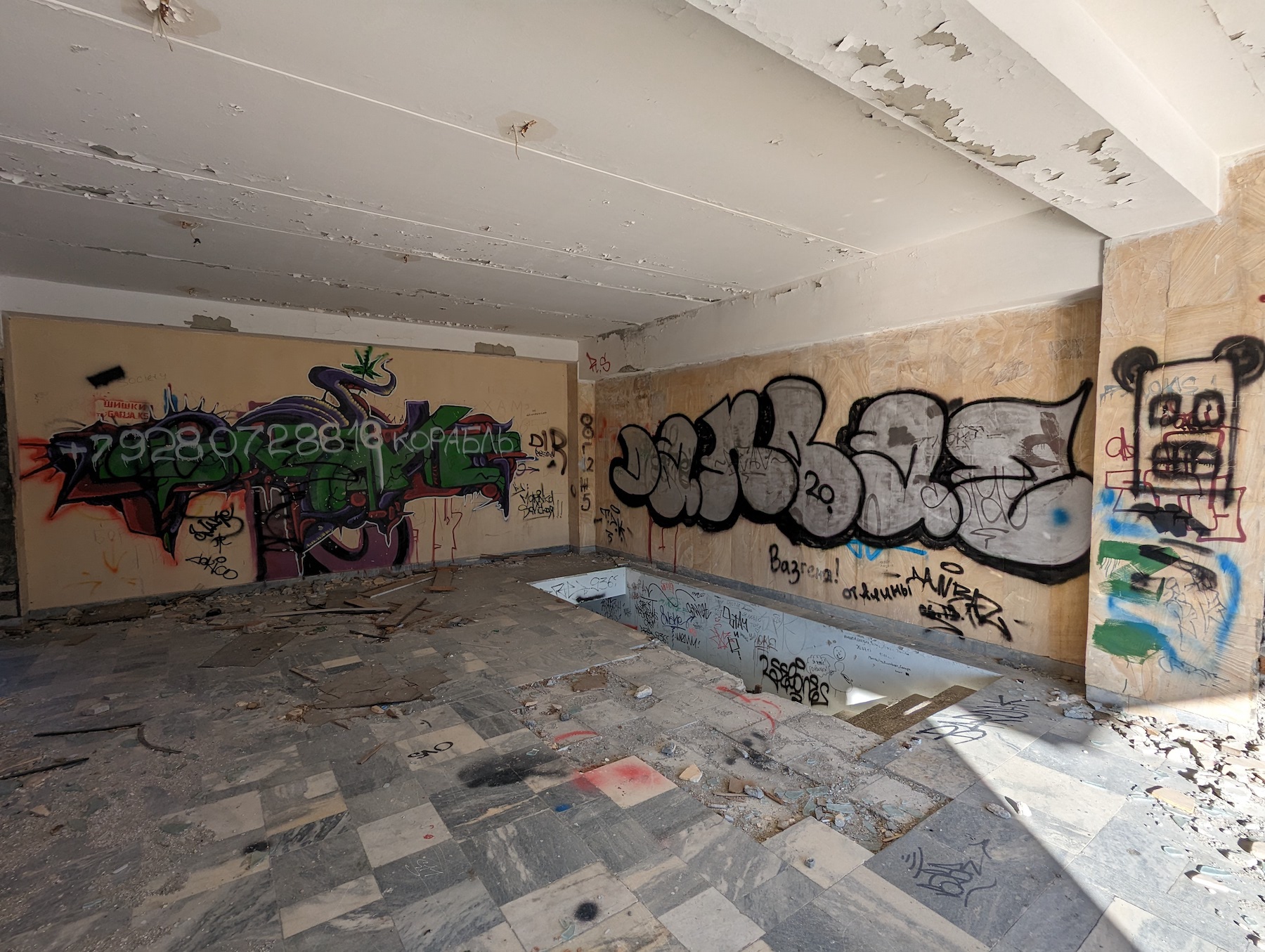 Сейчас территория бассейна находится в свободном доступе для всех желающих — никакой охраны нет.