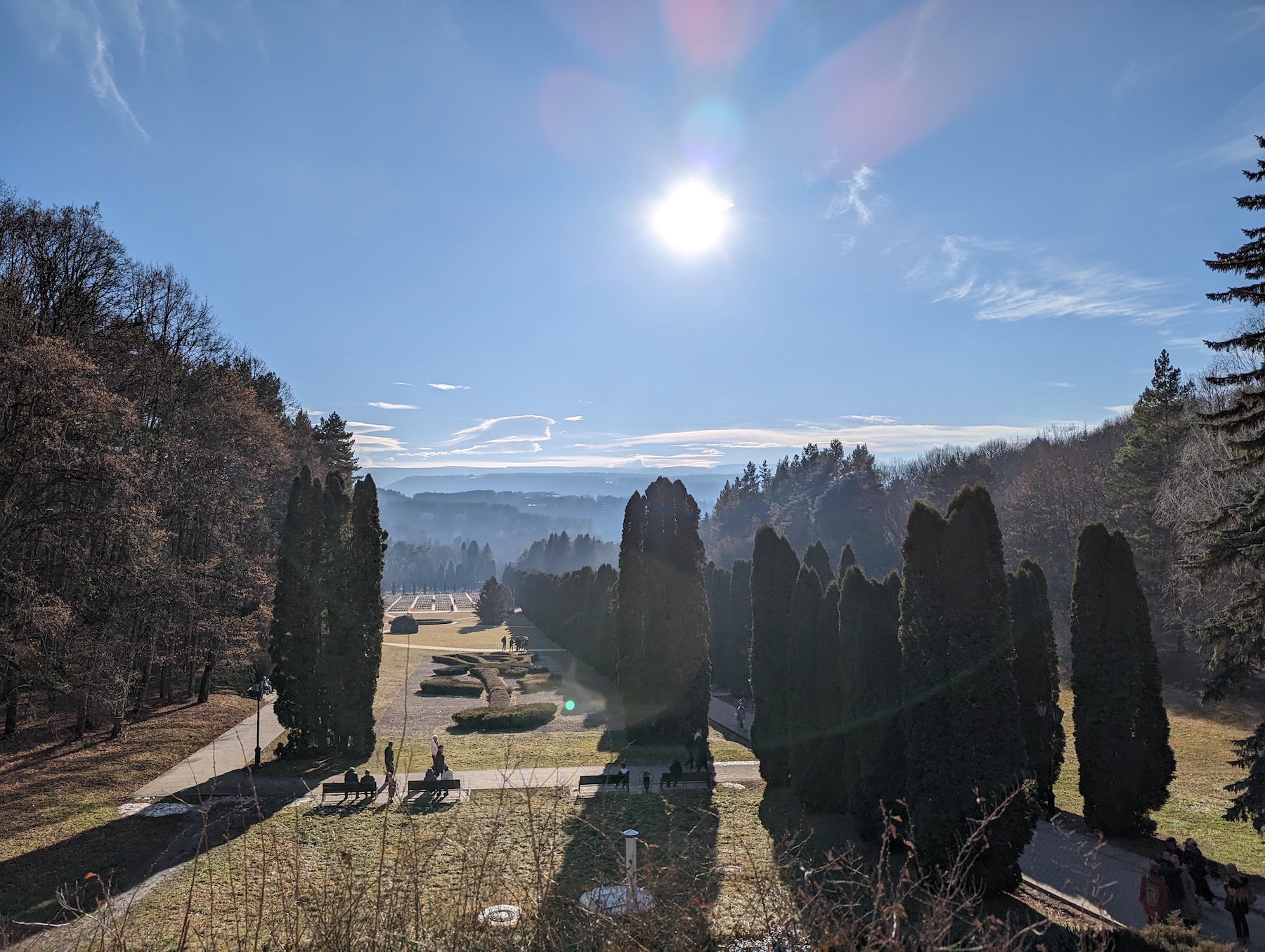 Когда мы поднялись наверх, солнце уже стало опускаться. Вниз решили спуститься пешком. Когда вернулись обратно в город, доехали до рестика, поужинали, и поехали обратно в гостиницу спать — на завтра была запланирована еще одна экскурсия.